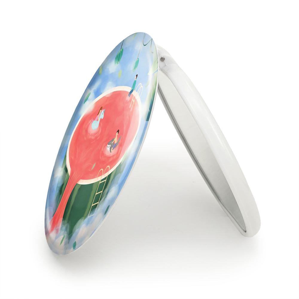 آینه های تاشو شب یلدا خندالو، از جنس پلاستیک فشرده ABS تولید شده و به رنگ سفید می باشد. یکی از آینه ها ابعاد واقعی را نشان داده و دیگری با قابلیت بزرگنمایی، جزئیات را بهتر نمایش می دهد.