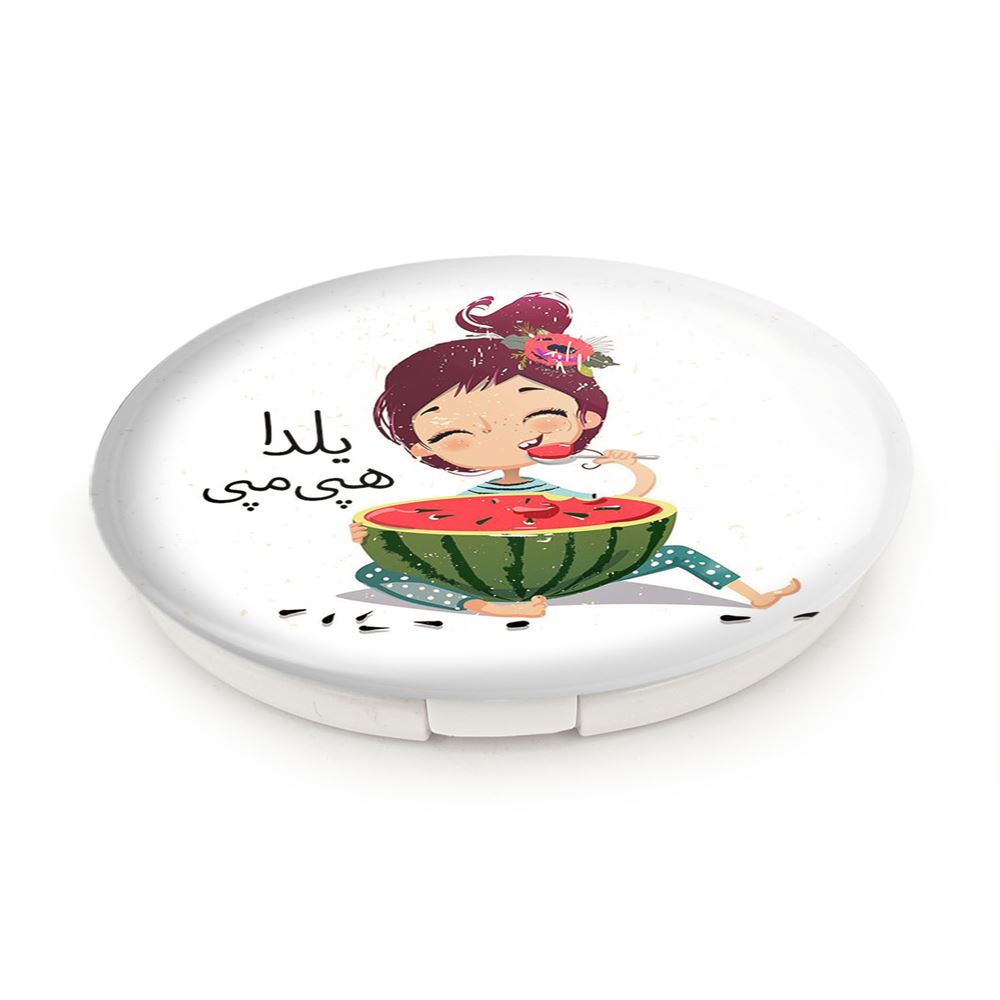 آینه های تاشو شب یلدا خندالو، از جنس پلاستیک فشرده ABS تولید شده و به رنگ سفید می باشد. یکی از آینه ها ابعاد واقعی را نشان داده و دیگری با قابلیت بزرگنمایی، جزئیات را بهتر نمایش می دهد.