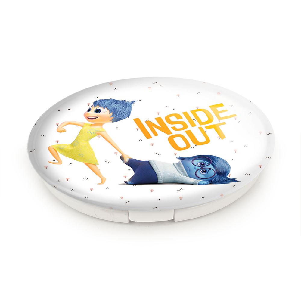 آینه های تاشو شخصیت غم و شادی انیمیشن اینساید اوت Inside Out خندالو، از جنس پلاستیک فشرده ABS تولید شده و به رنگ سفید می باشد. یکی از آینه ها ابعاد واقعی را نشان داده و دیگری با قابلیت بزرگنمایی، جزئیات را بهتر نمایش می دهد. ابعاد هر یک از آینه ها، دایره ای به قطر 7.5 سانت می باشد که نه خیلی بزرگ و غیر قابل استفاده در کیف آرایشی ست و نه خیلی کوچک که تصویر خاصی در آن مشاهده نشود. آینه تاشو شخصیت غم و شادی انیمیشن اینساید اوت Inside Out سایزی استاندارد و کارآمد دارد و در هر کیفی جا میگیرد. چاپ طرح بوسیله چاپگرهای دیجیتال شش رنگ با شفافیت و کیفیتی مثال زدنی بر روی یک وجه از بدنه ی آینه انجام گرفته و با روکش لمینت حرارتی پوشیده شده که در مقابل آسیب و خط و خش مقاوم بوده و کیفیت بالایی دارد. درب آینه بوسیله قفل بدنه ی آن، باز نمی ماند و کاملا بسته می شود و مناسب قرار گیری در کیف لوازم آرایش و کیف های کوچک دستی نیز هست. آینه های تاشو شخصیت غم و شادی انیمیشن اینساید اوت Inside Out خندالو با تنوع طرحی بسیار بالا، سلیقه هر نوع مخاطبی را تامین میکند.