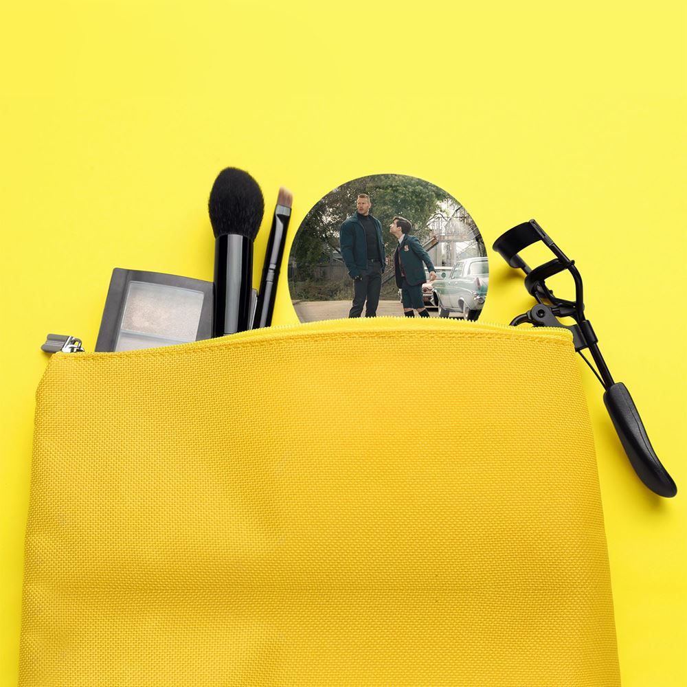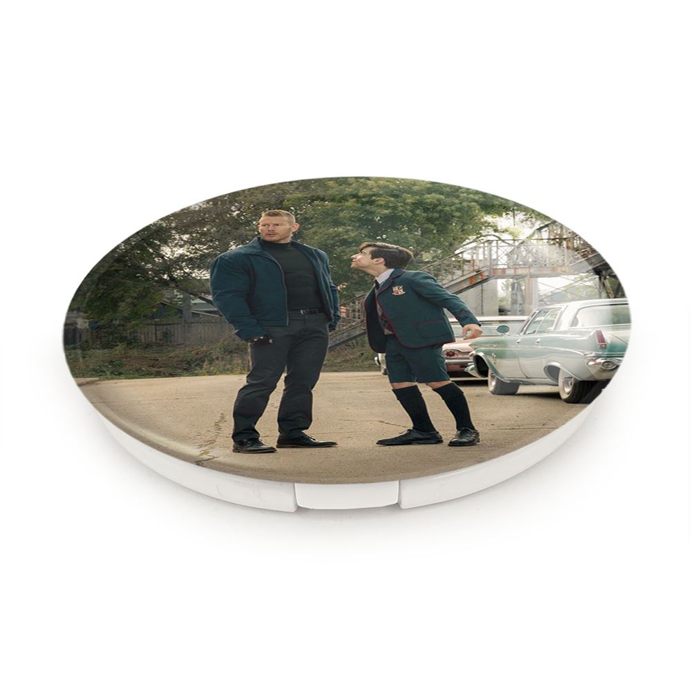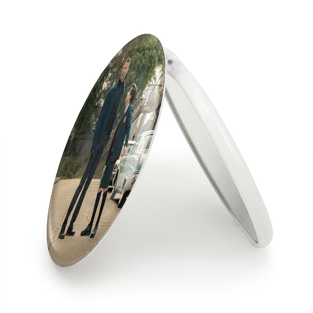 آینه های تاشو شماره پنج و لوثر سریال آکادمی آمبرلا The Umberella Academy خندالو، از جنس پلاستیک فشرده ABS تولید شده و به رنگ سفید می باشد. یکی از آینه ها ابعاد واقعی را نشان داده و دیگری با قابلیت بزرگنمایی، جزئیات را بهتر نمایش می دهد. ابعاد هر یک از آینه ها، دایره ای به قطر 7.5 سانت می باشد که نه خیلی بزرگ و غیر قابل استفاده در کیف آرایشی ست و نه خیلی کوچک که تصویر خاصی در آن مشاهده نشود. آینه تاشو شماره پنج و لوثر سریال آکادمی آمبرلا The Umberella Academy سایزی استاندارد و کارآمد دارد و در هر کیفی جا میگیرد. چاپ طرح بوسیله چاپگرهای دیجیتال شش رنگ با شفافیت و کیفیتی مثال زدنی بر روی یک وجه از بدنه ی آینه انجام گرفته و با روکش لمینت حرارتی پوشیده شده که در مقابل آسیب و خط و خش مقاوم بوده و کیفیت بالایی دارد. درب آینه بوسیله قفل بدنه ی آن، باز نمی ماند و کاملا بسته می شود و مناسب قرار گیری در کیف لوازم آرایش و کیف های کوچک دستی نیز هست. آینه های تاشو شماره پنج و لوثر سریال آکادمی آمبرلا The Umberella Academy خندالو با تنوع طرحی بسیار بالا، سلیقه هر نوع مخاطبی را تامین میکند.