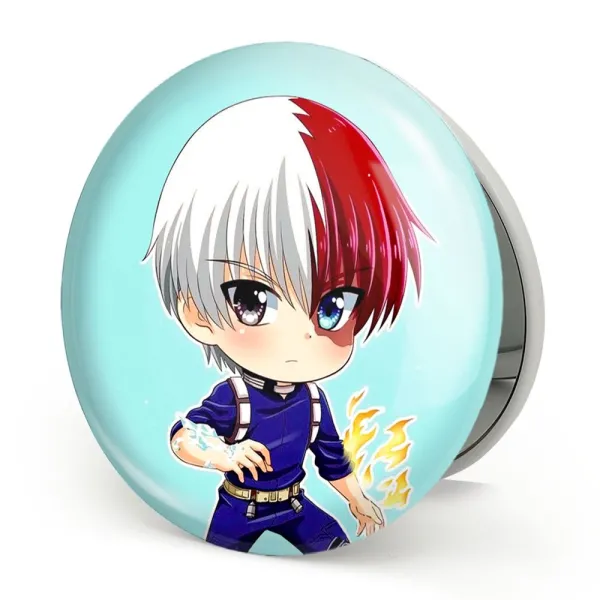 آینه های تاشو شوتو تودوروکی انیمه آکادمی قهرمان من My Hero Academia خندالو، از جنس پلاستیک فشرده ABS تولید شده و به رنگ سفید می باشد. یکی از آینه ها ابعاد واقعی را نشان داده و دیگری با قابلیت بزرگنمایی، جزئیات را بهتر نمایش می دهد. ابعاد هر یک از آینه ها، دایره ای به قطر 7.5 سانت می باشد که نه خیلی بزرگ و غیر قابل استفاده در کیف آرایشی ست و نه خیلی کوچک که تصویر خاصی در آن مشاهده نشود. آینه تاشو شوتو تودوروکی انیمه آکادمی قهرمان من My Hero Academia سایزی استاندارد و کارآمد دارد و در هر کیفی جا میگیرد. چاپ طرح بوسیله چاپگرهای دیجیتال شش رنگ با شفافیت و کیفیتی مثال زدنی بر روی یک وجه از بدنه ی آینه انجام گرفته و با روکش لمینت حرارتی پوشیده شده که در مقابل آسیب و خط و خش مقاوم بوده و کیفیت بالایی دارد. درب آینه بوسیله قفل بدنه ی آن، باز نمی ماند و کاملا بسته می شود و مناسب قرار گیری در کیف لوازم آرایش و کیف های کوچک دستی نیز هست. آینه های تاشو شوتو تودوروکی انیمه آکادمی قهرمان من My Hero Academia خندالو با تنوع طرحی بسیار بالا، سلیقه هر نوع مخاطبی را تامین میکند.