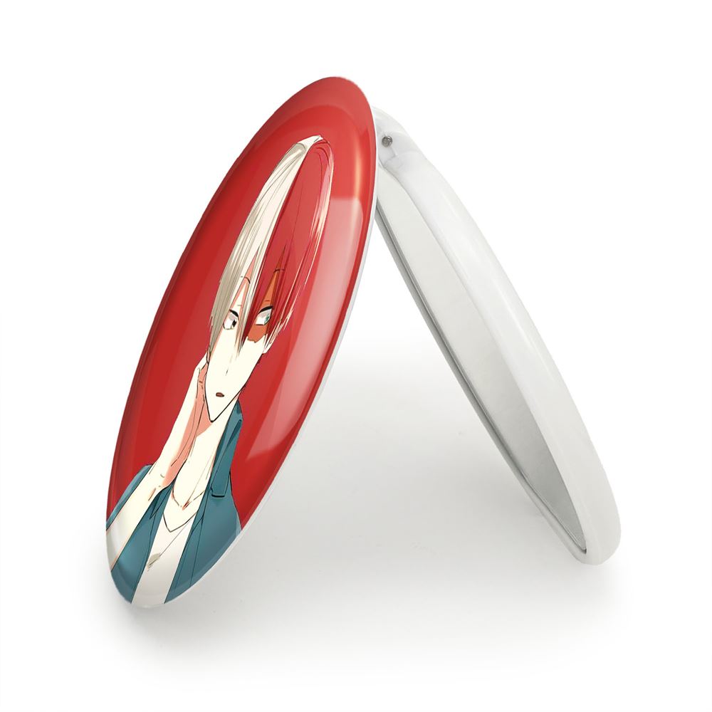 آینه های تاشو شوتو تودوروکی انیمه آکادمی قهرمان من My Hero Academia خندالو، از جنس پلاستیک فشرده ABS تولید شده و به رنگ سفید می باشد. یکی از آینه ها ابعاد واقعی را نشان داده و دیگری با قابلیت بزرگنمایی، جزئیات را بهتر نمایش می دهد. ابعاد هر یک از آینه ها، دایره ای به قطر 7.5 سانت می باشد که نه خیلی بزرگ و غیر قابل استفاده در کیف آرایشی ست و نه خیلی کوچک که تصویر خاصی در آن مشاهده نشود. آینه تاشو شوتو تودوروکی انیمه آکادمی قهرمان من My Hero Academia سایزی استاندارد و کارآمد دارد و در هر کیفی جا میگیرد. چاپ طرح بوسیله چاپگرهای دیجیتال شش رنگ با شفافیت و کیفیتی مثال زدنی بر روی یک وجه از بدنه ی آینه انجام گرفته و با روکش لمینت حرارتی پوشیده شده که در مقابل آسیب و خط و خش مقاوم بوده و کیفیت بالایی دارد. درب آینه بوسیله قفل بدنه ی آن، باز نمی ماند و کاملا بسته می شود و مناسب قرار گیری در کیف لوازم آرایش و کیف های کوچک دستی نیز هست. آینه های تاشو شوتو تودوروکی انیمه آکادمی قهرمان من My Hero Academia خندالو با تنوع طرحی بسیار بالا، سلیقه هر نوع مخاطبی را تامین میکند.
