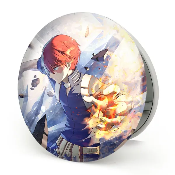 آینه های تاشو شوتو تودوروکی انیمه آکادمی قهرمان من خندالو، از جنس پلاستیک فشرده ABS تولید شده و به رنگ سفید می باشد. یکی از آینه ها ابعاد واقعی را نشان داده و دیگری با قابلیت بزرگنمایی، جزئیات را بهتر نمایش می دهد. ابعاد هر یک از آینه ها، دایره ای به قطر 7.5 سانت می باشد که نه خیلی بزرگ و غیر قابل استفاده در کیف آرایشی ست و نه خیلی کوچک که تصویر خاصی در آن مشاهده نشود. آینه تاشو شوتو تودوروکی انیمه آکادمی قهرمان من سایزی استاندارد و کارآمد دارد و در هر کیفی جا میگیرد. چاپ طرح بوسیله چاپگرهای دیجیتال شش رنگ با شفافیت و کیفیتی مثال زدنی بر روی یک وجه از بدنه ی آینه انجام گرفته و با روکش لمینت حرارتی پوشیده شده که در مقابل آسیب و خط و خش مقاوم بوده و کیفیت بالایی دارد. درب آینه بوسیله قفل بدنه ی آن، باز نمی ماند و کاملا بسته می شود و مناسب قرار گیری در کیف لوازم آرایش و کیف های کوچک دستی نیز هست. آینه های تاشو شوتو تودوروکی انیمه آکادمی قهرمان من خندالو با تنوع طرحی بسیار بالا، سلیقه هر نوع مخاطبی را تامین میکند.