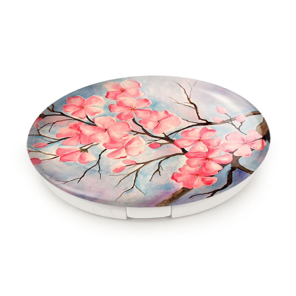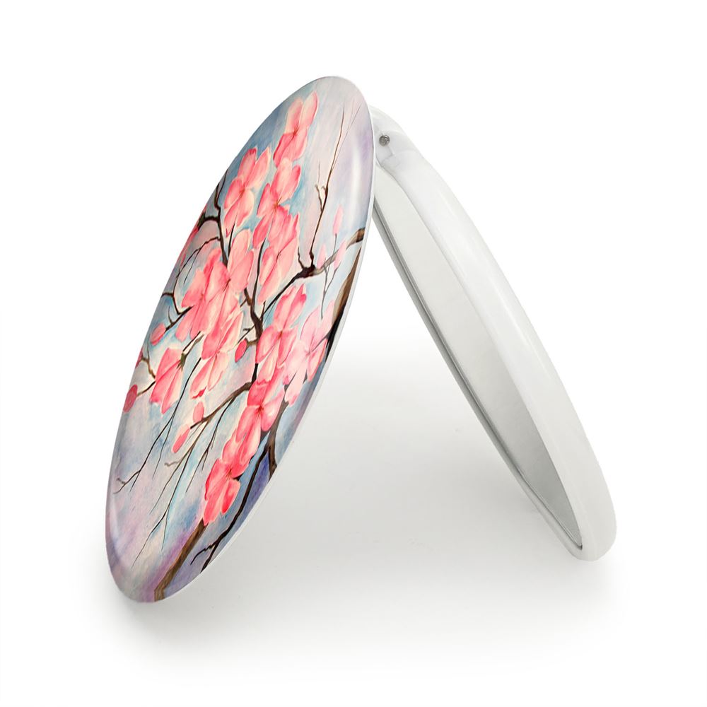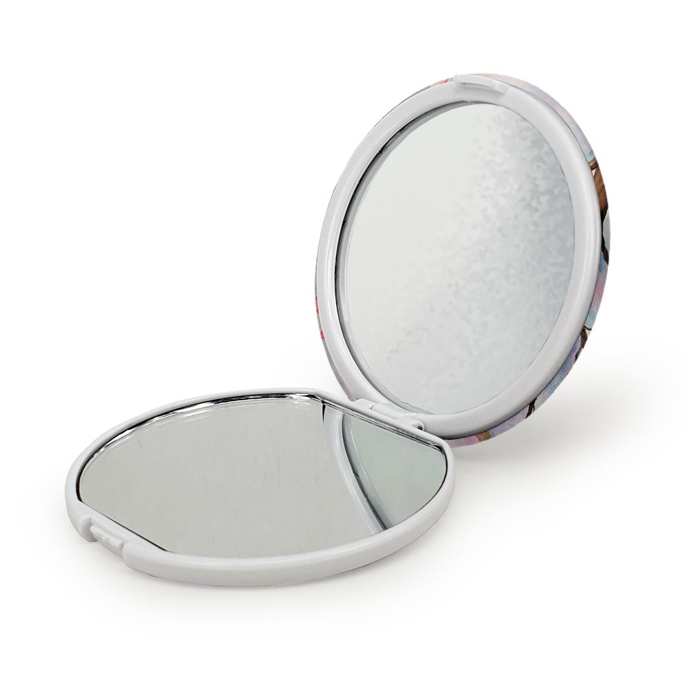 آینه های تاشو شکوفه خندالو، از جنس پلاستیک فشرده ABS تولید شده و به رنگ سفید می باشد. یکی از آینه ها ابعاد واقعی را نشان داده و دیگری با قابلیت بزرگنمایی، جزئیات را بهتر نمایش می دهد. ابعاد هر یک از آینه ها، دایره ای به قطر 7.5 سانت می باشد که نه خیلی بزرگ و غیر قابل استفاده در کیف آرایشی ست و نه خیلی کوچک که تصویر خاصی در آن مشاهده نشود. آینه تاشو شکوفه سایزی استاندارد و کارآمد دارد و در هر کیفی جا میگیرد. چاپ طرح بوسیله چاپگرهای دیجیتال شش رنگ با شفافیت و کیفیتی مثال زدنی بر روی یک وجه از بدنه ی آینه انجام گرفته و با روکش لمینت حرارتی پوشیده شده که در مقابل آسیب و خط و خش مقاوم بوده و کیفیت بالایی دارد. درب آینه بوسیله قفل بدنه ی آن، باز نمی ماند و کاملا بسته می شود و مناسب قرار گیری در کیف لوازم آرایش و کیف های کوچک دستی نیز هست. آینه های تاشو شکوفه خندالو با تنوع طرحی بسیار بالا، سلیقه هر نوع مخاطبی را تامین میکند.