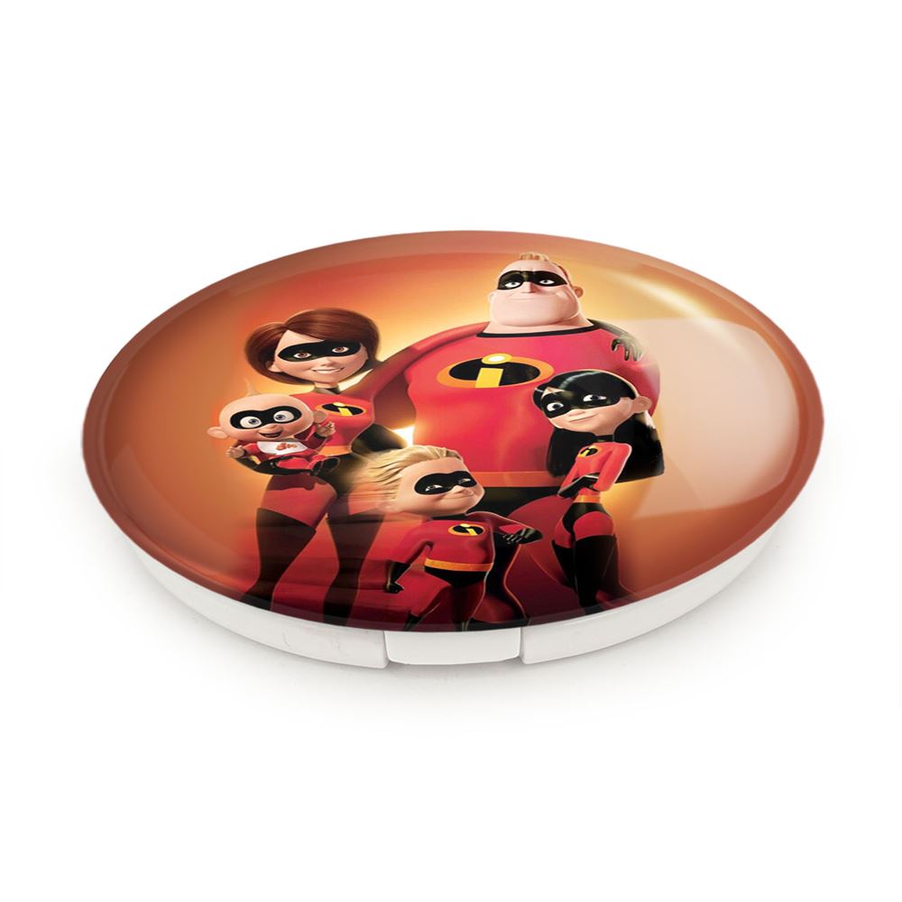 آینه های تاشو شگفت انگیزان The Incredibles خندالو، از جنس پلاستیک فشرده ABS تولید شده و به رنگ سفید می باشد. یکی از آینه ها ابعاد واقعی را نشان داده و دیگری با قابلیت بزرگنمایی، جزئیات را بهتر نمایش می دهد. ابعاد هر یک از آینه ها، دایره ای به قطر 7.5 سانت می باشد که نه خیلی بزرگ و غیر قابل استفاده در کیف آرایشی ست و نه خیلی کوچک که تصویر خاصی در آن مشاهده نشود. آینه تاشو شگفت انگیزان The Incredibles سایزی استاندارد و کارآمد دارد و در هر کیفی جا میگیرد. چاپ طرح بوسیله چاپگرهای دیجیتال شش رنگ با شفافیت و کیفیتی مثال زدنی بر روی یک وجه از بدنه ی آینه انجام گرفته و با روکش لمینت حرارتی پوشیده شده که در مقابل آسیب و خط و خش مقاوم بوده و کیفیت بالایی دارد. درب آینه بوسیله قفل بدنه ی آن، باز نمی ماند و کاملا بسته می شود و مناسب قرار گیری در کیف لوازم آرایش و کیف های کوچک دستی نیز هست. آینه های تاشو شگفت انگیزان The Incredibles خندالو با تنوع طرحی بسیار بالا، سلیقه هر نوع مخاطبی را تامین میکند.