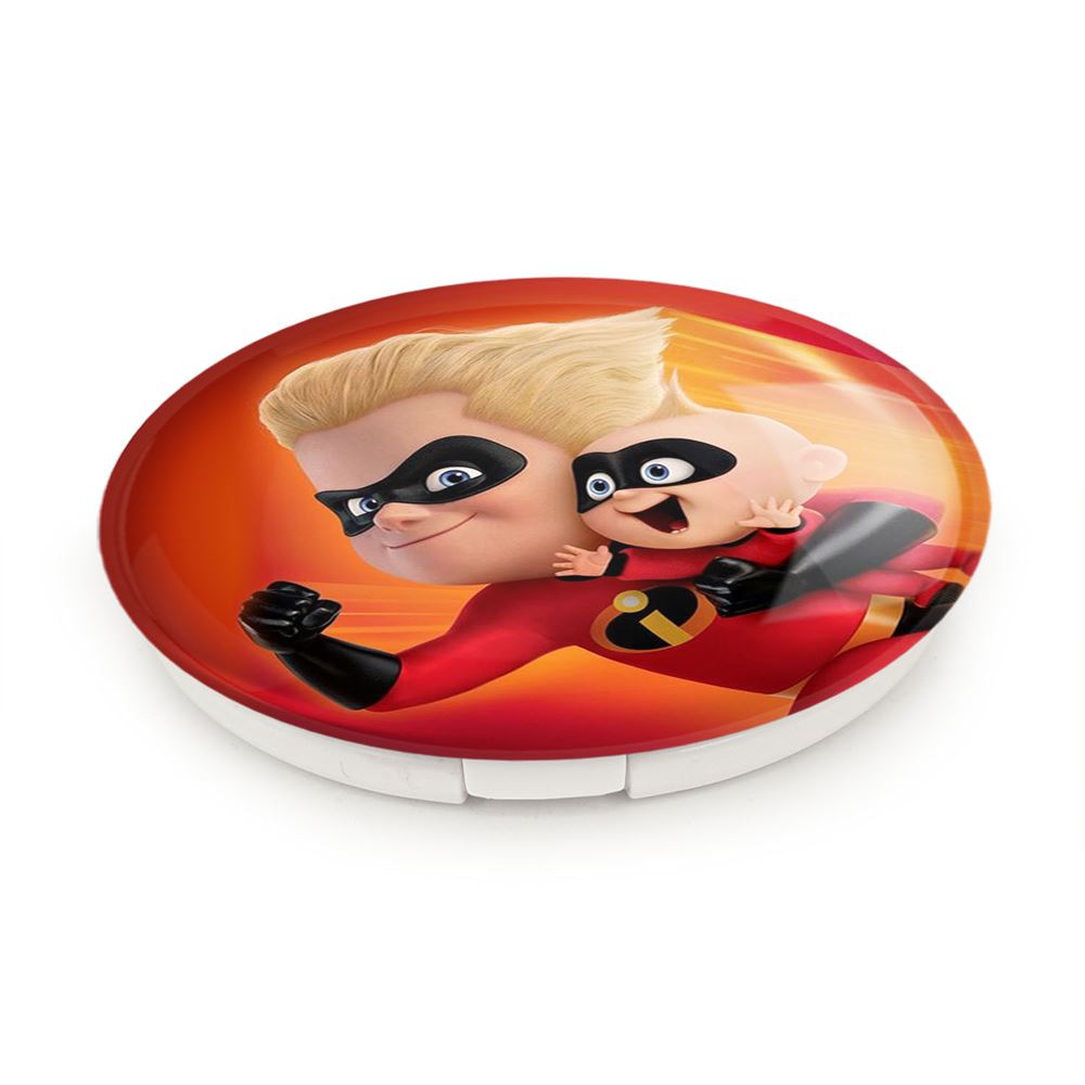 آینه های تاشو شگفت انگیزان The Incredibles خندالو، از جنس پلاستیک فشرده ABS تولید شده و به رنگ سفید می باشد. یکی از آینه ها ابعاد واقعی را نشان داده و دیگری با قابلیت بزرگنمایی، جزئیات را بهتر نمایش می دهد. ابعاد هر یک از آینه ها، دایره ای به قطر 7.5 سانت می باشد که نه خیلی بزرگ و غیر قابل استفاده در کیف آرایشی ست و نه خیلی کوچک که تصویر خاصی در آن مشاهده نشود. آینه تاشو شگفت انگیزان The Incredibles سایزی استاندارد و کارآمد دارد و در هر کیفی جا میگیرد. چاپ طرح بوسیله چاپگرهای دیجیتال شش رنگ با شفافیت و کیفیتی مثال زدنی بر روی یک وجه از بدنه ی آینه انجام گرفته و با روکش لمینت حرارتی پوشیده شده که در مقابل آسیب و خط و خش مقاوم بوده و کیفیت بالایی دارد. درب آینه بوسیله قفل بدنه ی آن، باز نمی ماند و کاملا بسته می شود و مناسب قرار گیری در کیف لوازم آرایش و کیف های کوچک دستی نیز هست. آینه های تاشو شگفت انگیزان The Incredibles خندالو با تنوع طرحی بسیار بالا، سلیقه هر نوع مخاطبی را تامین میکند.