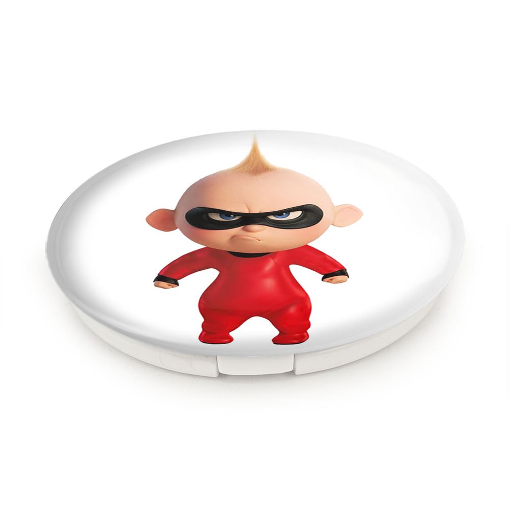 آینه های تاشو شگفت انگیزان The Incredibles خندالو، از جنس پلاستیک فشرده ABS تولید شده و به رنگ سفید می باشد. یکی از آینه ها ابعاد واقعی را نشان داده و دیگری با قابلیت بزرگنمایی، جزئیات را بهتر نمایش می دهد. ابعاد هر یک از آینه ها، دایره ای به قطر 7.5 سانت می باشد که نه خیلی بزرگ و غیر قابل استفاده در کیف آرایشی ست و نه خیلی کوچک که تصویر خاصی در آن مشاهده نشود. آینه تاشو شگفت انگیزان The Incredibles سایزی استاندارد و کارآمد دارد و در هر کیفی جا میگیرد. چاپ طرح بوسیله چاپگرهای دیجیتال شش رنگ با شفافیت و کیفیتی مثال زدنی بر روی یک وجه از بدنه ی آینه انجام گرفته و با روکش لمینت حرارتی پوشیده شده که در مقابل آسیب و خط و خش مقاوم بوده و کیفیت بالایی دارد. درب آینه بوسیله قفل بدنه ی آن، باز نمی ماند و کاملا بسته می شود و مناسب قرار گیری در کیف لوازم آرایش و کیف های کوچک دستی نیز هست. آینه های تاشو شگفت انگیزان The Incredibles خندالو با تنوع طرحی بسیار بالا، سلیقه هر نوع مخاطبی را تامین میکند.
