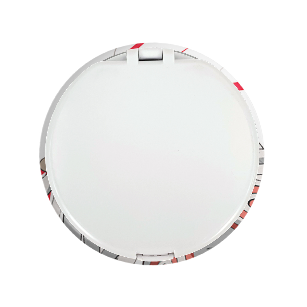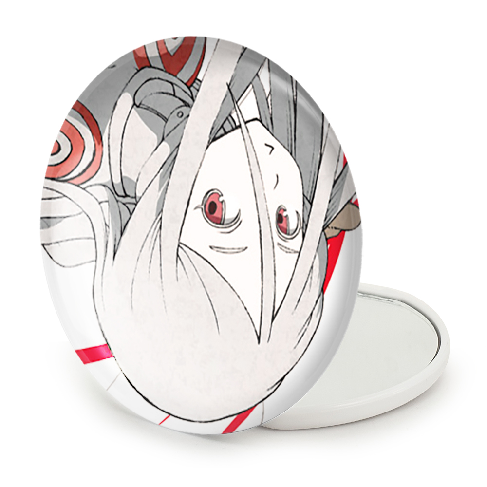 آینه های تاشو شیرو انیمه ددمن واندرلند خندالو، از جنس پلاستیک فشرده ABS تولید شده و به رنگ سفید می باشد. یکی از آینه ها ابعاد واقعی را نشان داده و دیگری با قابلیت بزرگنمایی، جزئیات را بهتر نمایش می دهد. ابعاد هر یک از آینه ها، دایره ای به قطر 7.5 سانت می باشد که نه خیلی بزرگ و غیر قابل استفاده در کیف آرایشی ست و نه خیلی کوچک که تصویر خاصی در آن مشاهده نشود. آینه تاشو شیرو انیمه ددمن واندرلند سایزی استاندارد و کارآمد دارد و در هر کیفی جا میگیرد. چاپ طرح بوسیله چاپگرهای دیجیتال شش رنگ با شفافیت و کیفیتی مثال زدنی بر روی یک وجه از بدنه ی آینه انجام گرفته و با روکش لمینت حرارتی پوشیده شده که در مقابل آسیب و خط و خش مقاوم بوده و کیفیت بالایی دارد. درب آینه بوسیله قفل بدنه ی آن، باز نمی ماند و کاملا بسته می شود و مناسب قرار گیری در کیف لوازم آرایش و کیف های کوچک دستی نیز هست. آینه های تاشو شیرو انیمه ددمن واندرلند خندالو با تنوع طرحی بسیار بالا، سلیقه هر نوع مخاطبی را تامین میکند.