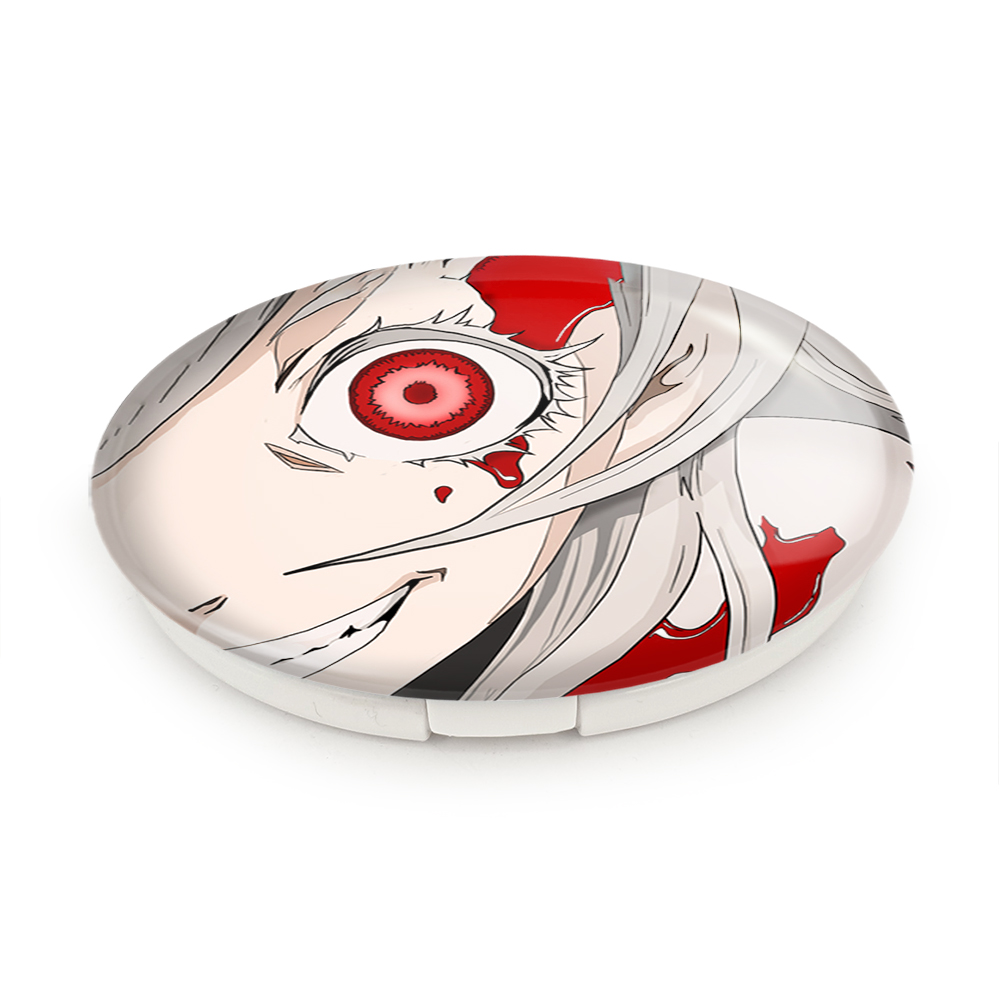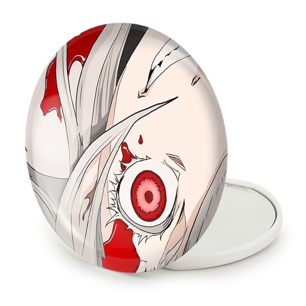آینه های تاشو شیرو انیمه ددمن واندرلند خندالو، از جنس پلاستیک فشرده ABS تولید شده و به رنگ سفید می باشد. یکی از آینه ها ابعاد واقعی را نشان داده و دیگری با قابلیت بزرگنمایی، جزئیات را بهتر نمایش می دهد. ابعاد هر یک از آینه ها، دایره ای به قطر 7.5 سانت می باشد که نه خیلی بزرگ و غیر قابل استفاده در کیف آرایشی ست و نه خیلی کوچک که تصویر خاصی در آن مشاهده نشود. آینه تاشو شیرو انیمه ددمن واندرلند سایزی استاندارد و کارآمد دارد و در هر کیفی جا میگیرد. چاپ طرح بوسیله چاپگرهای دیجیتال شش رنگ با شفافیت و کیفیتی مثال زدنی بر روی یک وجه از بدنه ی آینه انجام گرفته و با روکش لمینت حرارتی پوشیده شده که در مقابل آسیب و خط و خش مقاوم بوده و کیفیت بالایی دارد. درب آینه بوسیله قفل بدنه ی آن، باز نمی ماند و کاملا بسته می شود و مناسب قرار گیری در کیف لوازم آرایش و کیف های کوچک دستی نیز هست. آینه های تاشو شیرو انیمه ددمن واندرلند خندالو با تنوع طرحی بسیار بالا، سلیقه هر نوع مخاطبی را تامین میکند.