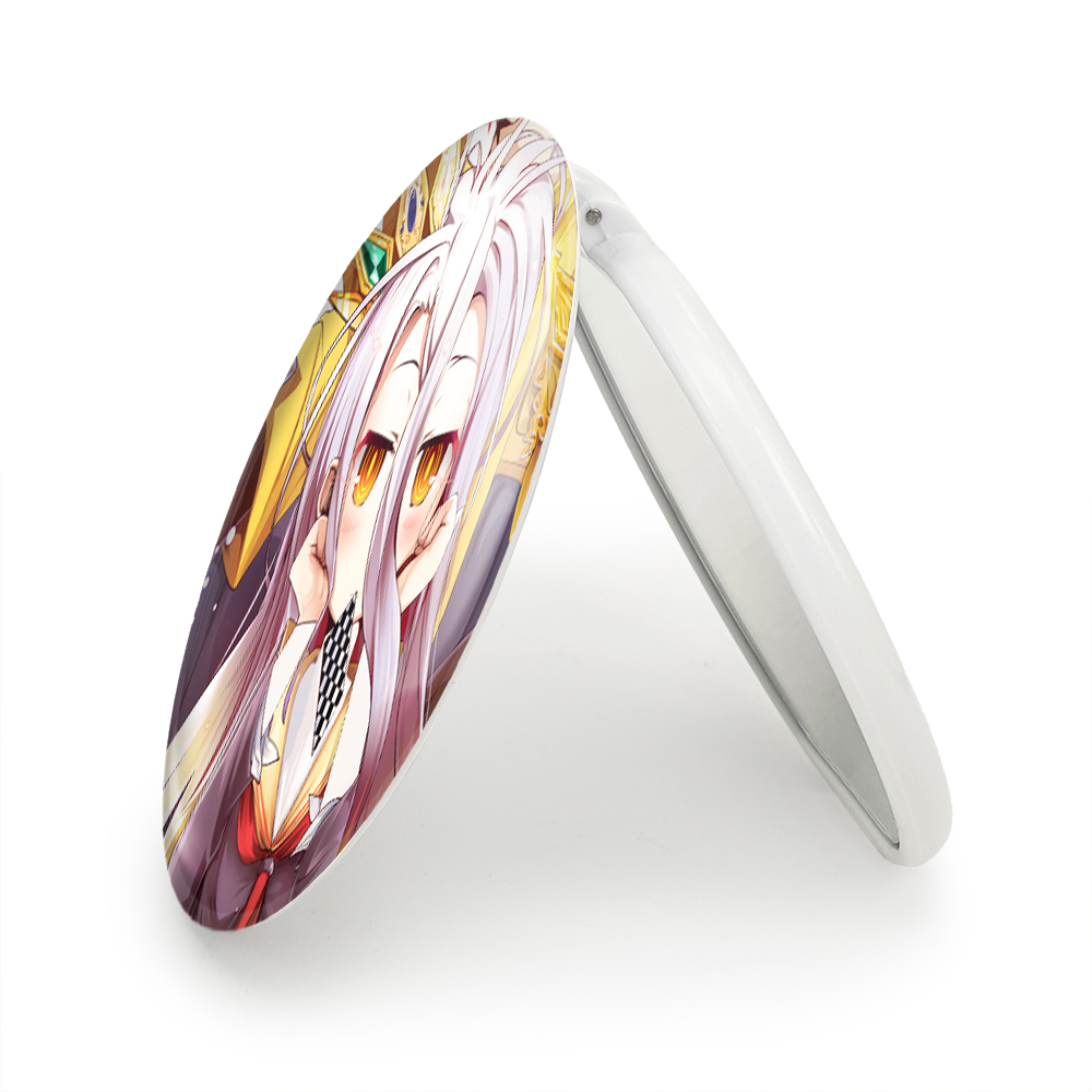 آینه های تاشو شیرو و سورا انیمه نو گیم نو لایف خندالو، از جنس پلاستیک فشرده ABS تولید شده و به رنگ سفید می باشد. یکی از آینه ها ابعاد واقعی را نشان داده و دیگری با قابلیت بزرگنمایی، جزئیات را بهتر نمایش می دهد. ابعاد هر یک از آینه ها، دایره ای به قطر 7.5 سانت می باشد که نه خیلی بزرگ و غیر قابل استفاده در کیف آرایشی ست و نه خیلی کوچک که تصویر خاصی در آن مشاهده نشود. آینه تاشو شیرو و سورا انیمه نو گیم نو لایف سایزی استاندارد و کارآمد دارد و در هر کیفی جا میگیرد. چاپ طرح بوسیله چاپگرهای دیجیتال شش رنگ با شفافیت و کیفیتی مثال زدنی بر روی یک وجه از بدنه ی آینه انجام گرفته و با روکش لمینت حرارتی پوشیده شده که در مقابل آسیب و خط و خش مقاوم بوده و کیفیت بالایی دارد. درب آینه بوسیله قفل بدنه ی آن، باز نمی ماند و کاملا بسته می شود و مناسب قرار گیری در کیف لوازم آرایش و کیف های کوچک دستی نیز هست. آینه های تاشو شیرو و سورا انیمه نو گیم نو لایف خندالو با تنوع طرحی بسیار بالا، سلیقه هر نوع مخاطبی را تامین میکند.
