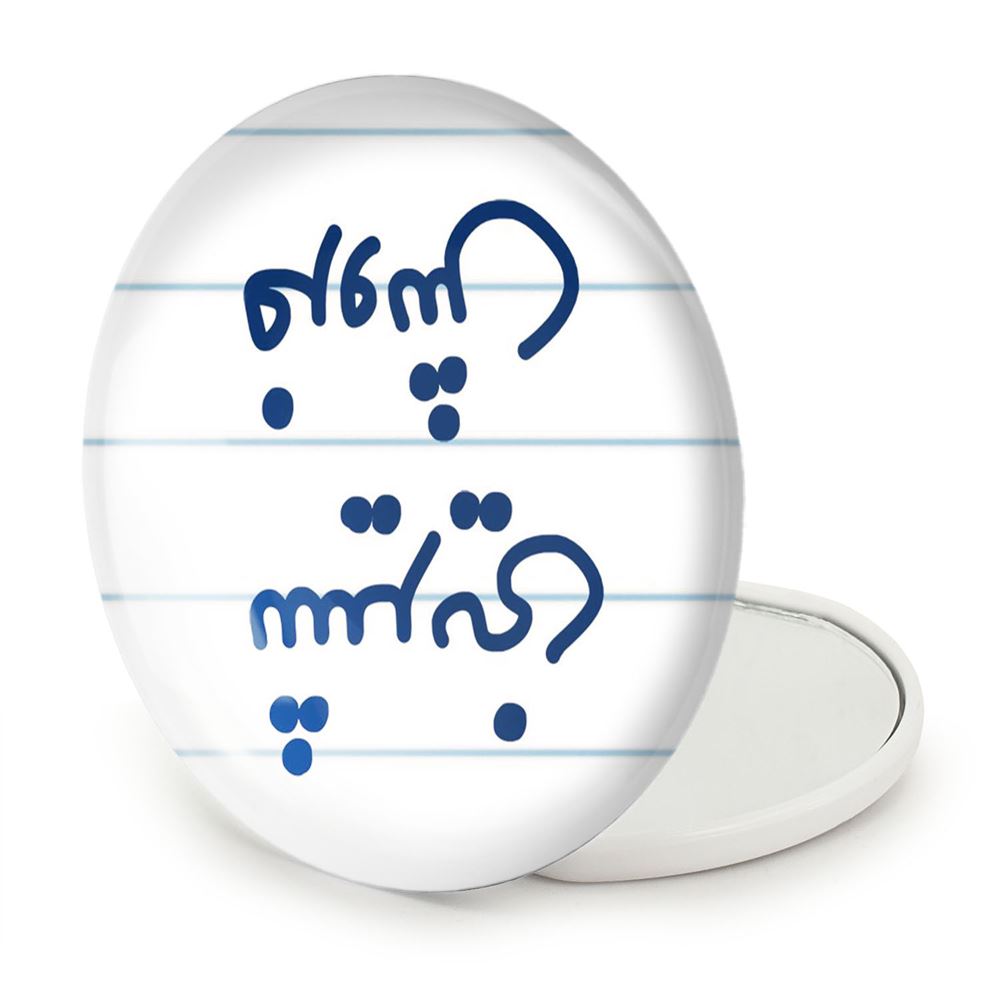 آینه های تاشو شیرینی فروش خندالو، از جنس پلاستیک فشرده ABS تولید شده و به رنگ سفید می باشد. یکی از آینه ها ابعاد واقعی را نشان داده و دیگری با قابلیت بزرگنمایی، جزئیات را بهتر نمایش می دهد. ابعاد هر یک از آینه ها، دایره ای به قطر 7.5 سانت می باشد که نه خیلی بزرگ و غیر قابل استفاده در کیف آرایشی ست و نه خیلی کوچک که تصویر خاصی در آن مشاهده نشود. آینه تاشو شیرینی فروش سایزی استاندارد و کارآمد دارد و در هر کیفی جا میگیرد. چاپ طرح بوسیله چاپگرهای دیجیتال شش رنگ با شفافیت و کیفیتی مثال زدنی بر روی یک وجه از بدنه ی آینه انجام گرفته و با روکش لمینت حرارتی پوشیده شده که در مقابل آسیب و خط و خش مقاوم بوده و کیفیت بالایی دارد. درب آینه بوسیله قفل بدنه ی آن، باز نمی ماند و کاملا بسته می شود و مناسب قرار گیری در کیف لوازم آرایش و کیف های کوچک دستی نیز هست. آینه های تاشو شیرینی فروش خندالو با تنوع طرحی بسیار بالا، سلیقه هر نوع مخاطبی را تامین میکند.