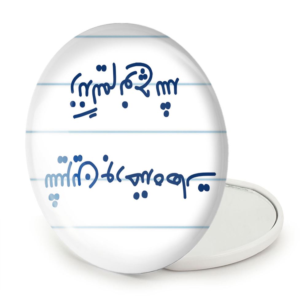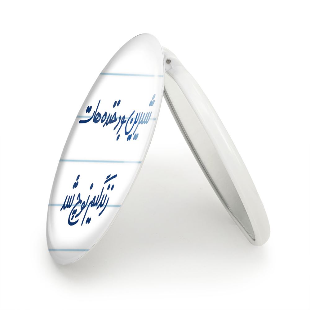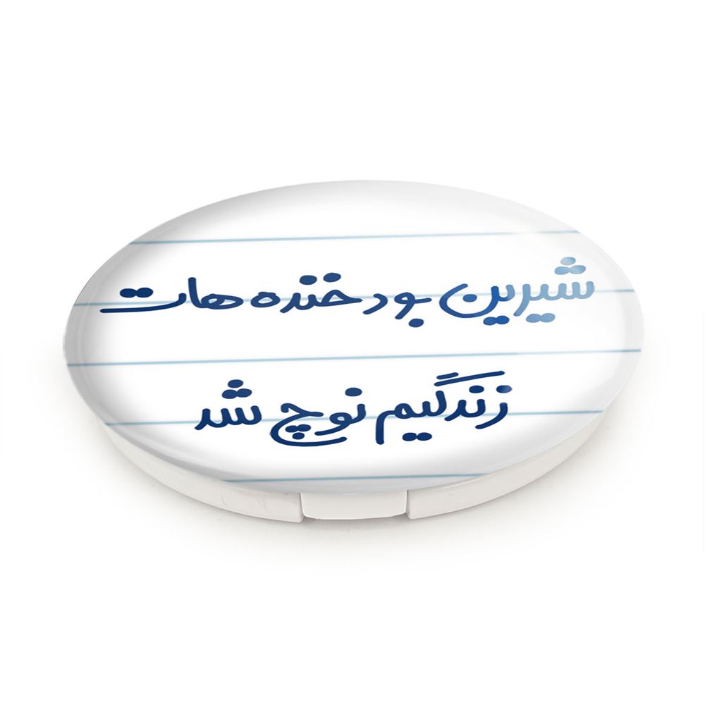 آینه های تاشو شیرین بود خنده هات زندگیم نوچ شد خندالو، از جنس پلاستیک فشرده ABS تولید شده و به رنگ سفید می باشد. یکی از آینه ها ابعاد واقعی را نشان داده و دیگری با قابلیت بزرگنمایی، جزئیات را بهتر نمایش می دهد. ابعاد هر یک از آینه ها، دایره ای به قطر 7.5 سانت می باشد که نه خیلی بزرگ و غیر قابل استفاده در کیف آرایشی ست و نه خیلی کوچک که تصویر خاصی در آن مشاهده نشود. آینه تاشو شیرین بود خنده هات زندگیم نوچ شد سایزی استاندارد و کارآمد دارد و در هر کیفی جا میگیرد. چاپ طرح بوسیله چاپگرهای دیجیتال شش رنگ با شفافیت و کیفیتی مثال زدنی بر روی یک وجه از بدنه ی آینه انجام گرفته و با روکش لمینت حرارتی پوشیده شده که در مقابل آسیب و خط و خش مقاوم بوده و کیفیت بالایی دارد. درب آینه بوسیله قفل بدنه ی آن، باز نمی ماند و کاملا بسته می شود و مناسب قرار گیری در کیف لوازم آرایش و کیف های کوچک دستی نیز هست. آینه های تاشو شیرین بود خنده هات زندگیم نوچ شد خندالو با تنوع طرحی بسیار بالا، سلیقه هر نوع مخاطبی را تامین میکند.