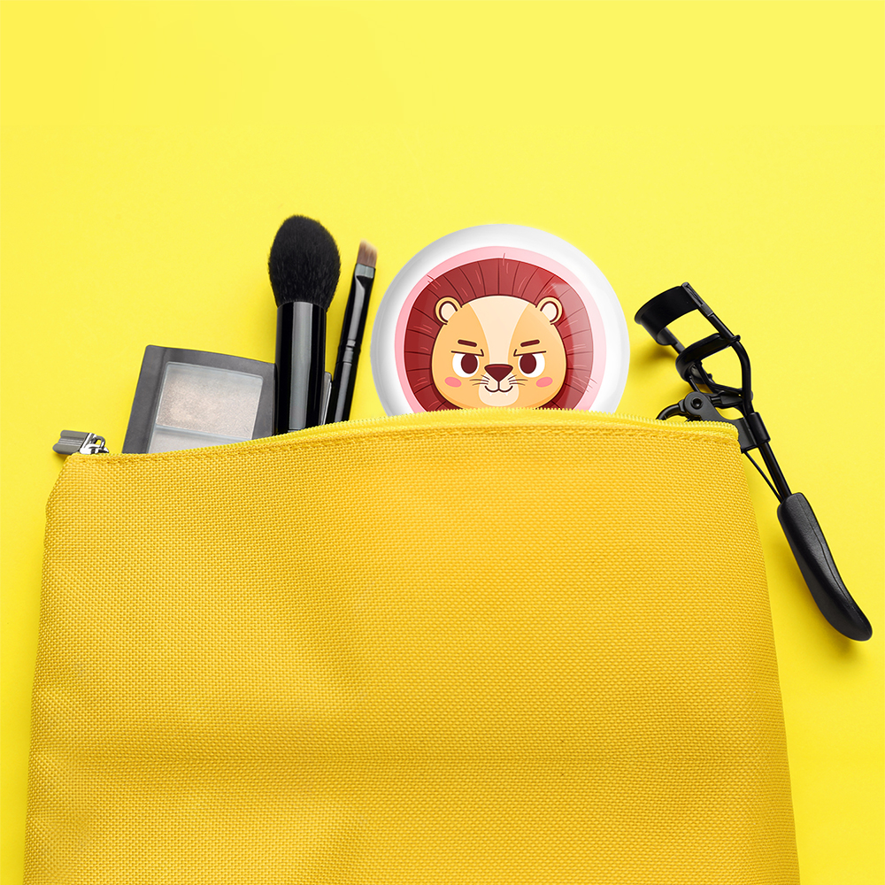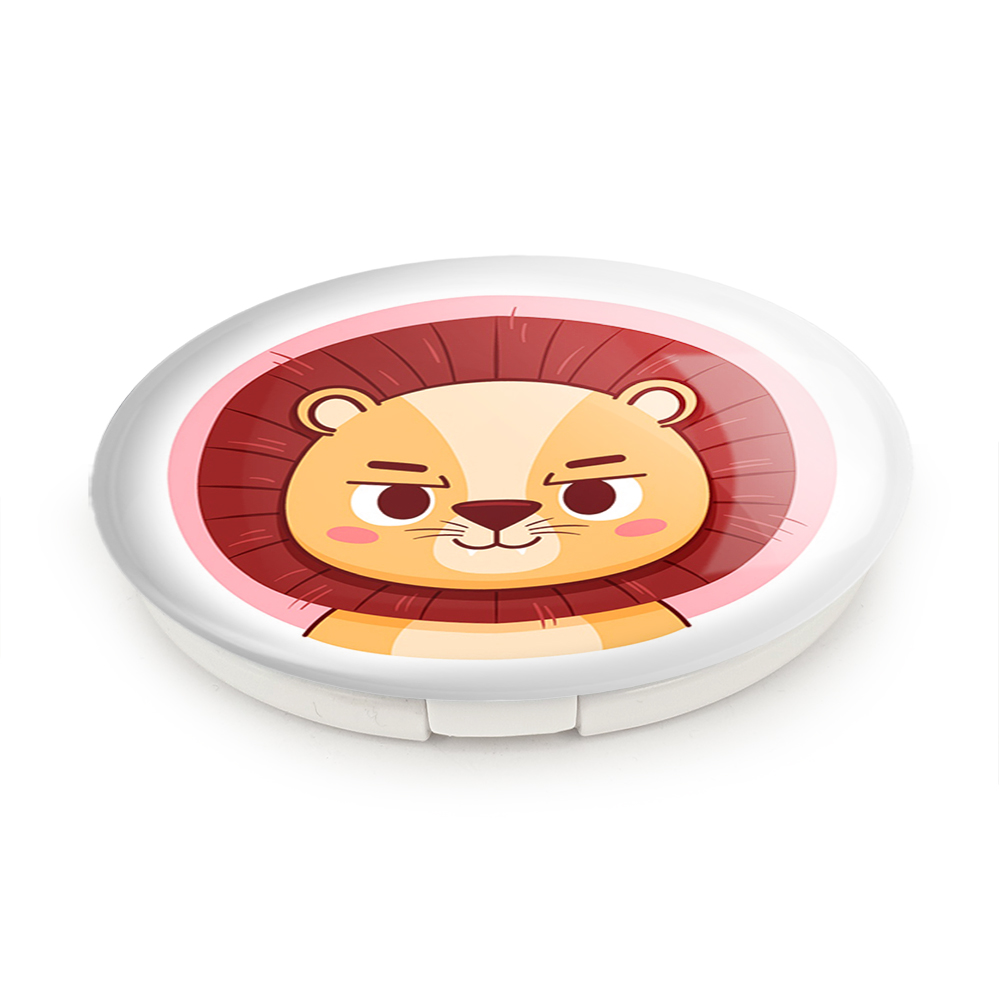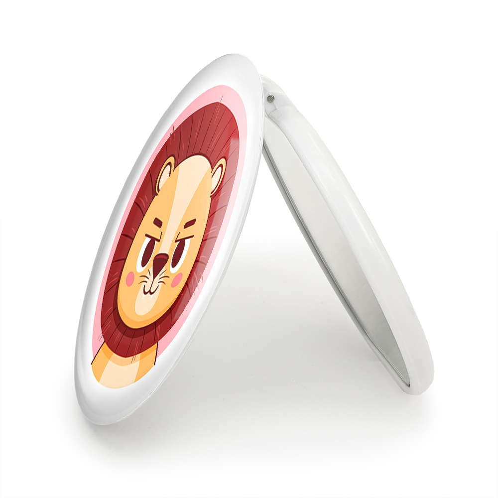آینه های تاشو شیر حیوانات بامزه خندالو، از جنس پلاستیک فشرده ABS تولید شده و به رنگ سفید می باشد. یکی از آینه ها ابعاد واقعی را نشان داده و دیگری با قابلیت بزرگنمایی، جزئیات را بهتر نمایش می دهد. ابعاد هر یک از آینه ها، دایره ای به قطر 7.5 سانت می باشد که نه خیلی بزرگ و غیر قابل استفاده در کیف آرایشی ست و نه خیلی کوچک که تصویر خاصی در آن مشاهده نشود. آینه تاشو شیر حیوانات بامزه سایزی استاندارد و کارآمد دارد و در هر کیفی جا میگیرد. چاپ طرح بوسیله چاپگرهای دیجیتال شش رنگ با شفافیت و کیفیتی مثال زدنی بر روی یک وجه از بدنه ی آینه انجام گرفته و با روکش لمینت حرارتی پوشیده شده که در مقابل آسیب و خط و خش مقاوم بوده و کیفیت بالایی دارد. درب آینه بوسیله قفل بدنه ی آن، باز نمی ماند و کاملا بسته می شود و مناسب قرار گیری در کیف لوازم آرایش و کیف های کوچک دستی نیز هست. آینه های تاشو شیر حیوانات بامزه خندالو با تنوع طرحی بسیار بالا، سلیقه هر نوع مخاطبی را تامین میکند.
