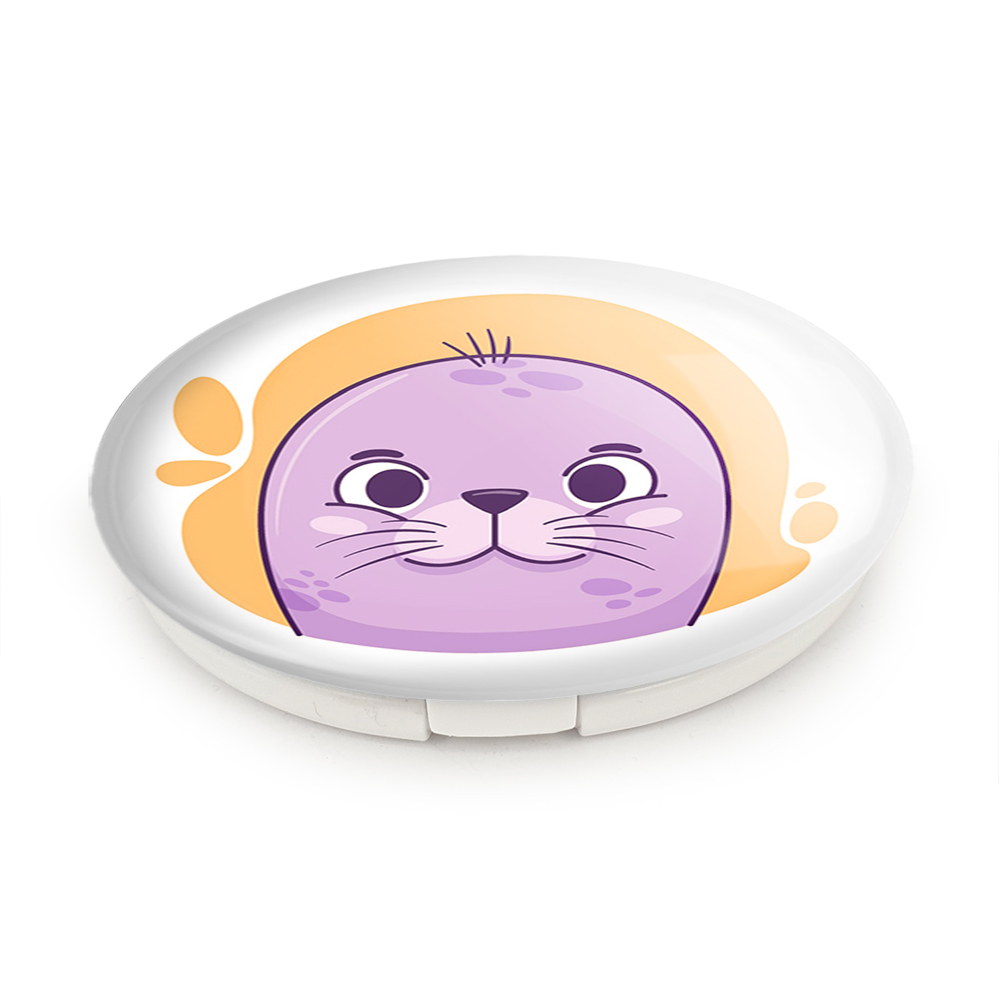 آینه های تاشو شیر دریایی حیوانات بامزه خندالو، از جنس پلاستیک فشرده ABS تولید شده و به رنگ سفید می باشد. یکی از آینه ها ابعاد واقعی را نشان داده و دیگری با قابلیت بزرگنمایی، جزئیات را بهتر نمایش می دهد. ابعاد هر یک از آینه ها، دایره ای به قطر 7.5 سانت می باشد که نه خیلی بزرگ و غیر قابل استفاده در کیف آرایشی ست و نه خیلی کوچک که تصویر خاصی در آن مشاهده نشود. آینه تاشو شیر دریایی حیوانات بامزه سایزی استاندارد و کارآمد دارد و در هر کیفی جا میگیرد. چاپ طرح بوسیله چاپگرهای دیجیتال شش رنگ با شفافیت و کیفیتی مثال زدنی بر روی یک وجه از بدنه ی آینه انجام گرفته و با روکش لمینت حرارتی پوشیده شده که در مقابل آسیب و خط و خش مقاوم بوده و کیفیت بالایی دارد. درب آینه بوسیله قفل بدنه ی آن، باز نمی ماند و کاملا بسته می شود و مناسب قرار گیری در کیف لوازم آرایش و کیف های کوچک دستی نیز هست. آینه های تاشو شیر دریایی حیوانات بامزه خندالو با تنوع طرحی بسیار بالا، سلیقه هر نوع مخاطبی را تامین میکند.