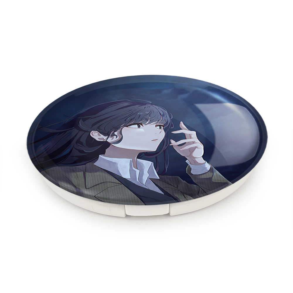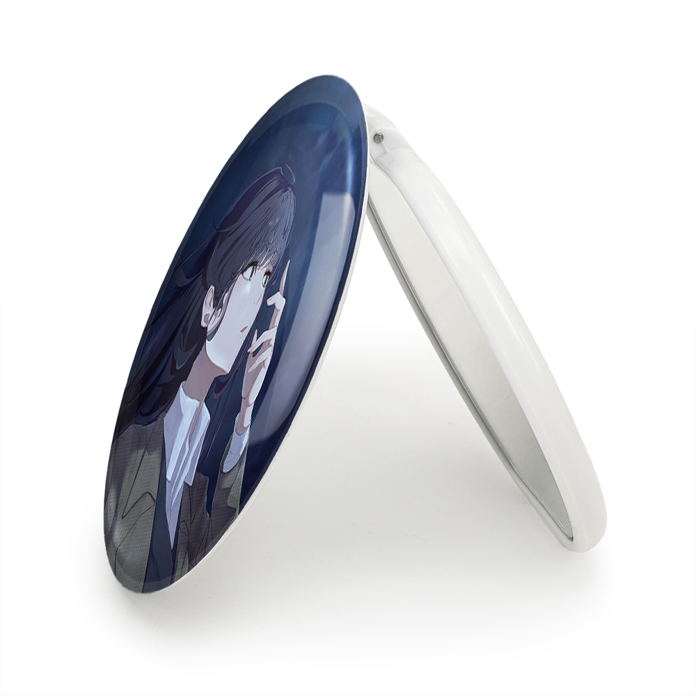 آینه های تاشو شیزوکا انیمه جوانی کمدی رومانتیک من خندالو، از جنس پلاستیک فشرده ABS تولید شده و به رنگ سفید می باشد. یکی از آینه ها ابعاد واقعی را نشان داده و دیگری با قابلیت بزرگنمایی، جزئیات را بهتر نمایش می دهد. ابعاد هر یک از آینه ها، دایره ای به قطر 7.5 سانت می باشد که نه خیلی بزرگ و غیر قابل استفاده در کیف آرایشی ست و نه خیلی کوچک که تصویر خاصی در آن مشاهده نشود. آینه تاشو شیزوکا انیمه جوانی کمدی رومانتیک من سایزی استاندارد و کارآمد دارد و در هر کیفی جا میگیرد. چاپ طرح بوسیله چاپگرهای دیجیتال شش رنگ با شفافیت و کیفیتی مثال زدنی بر روی یک وجه از بدنه ی آینه انجام گرفته و با روکش لمینت حرارتی پوشیده شده که در مقابل آسیب و خط و خش مقاوم بوده و کیفیت بالایی دارد. درب آینه بوسیله قفل بدنه ی آن، باز نمی ماند و کاملا بسته می شود و مناسب قرار گیری در کیف لوازم آرایش و کیف های کوچک دستی نیز هست. آینه های تاشو شیزوکا انیمه جوانی کمدی رومانتیک من خندالو با تنوع طرحی بسیار بالا، سلیقه هر نوع مخاطبی را تامین میکند.