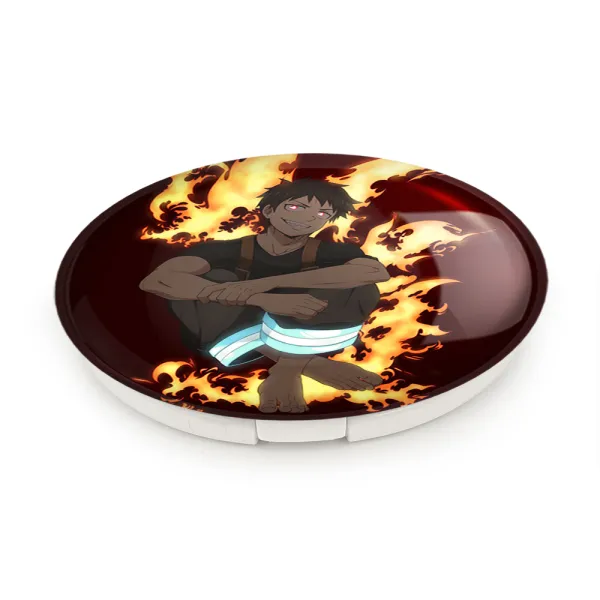 آینه های تاشو شینرا انیمه نیروی آتش خندالو، از جنس پلاستیک فشرده ABS تولید شده و به رنگ سفید می باشد. یکی از آینه ها ابعاد واقعی را نشان داده و دیگری با قابلیت بزرگنمایی، جزئیات را بهتر نمایش می دهد.