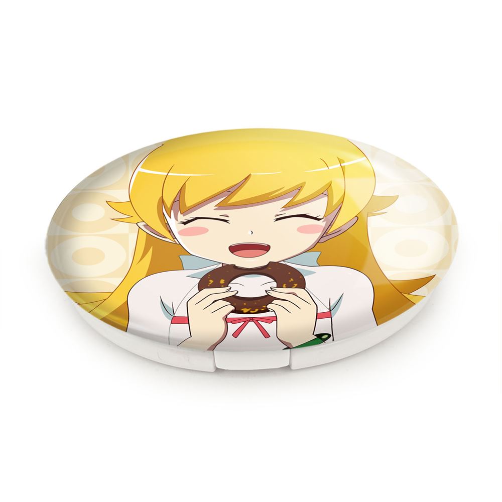 آینه های تاشو شینوبو اوشینو انیمه مونوگاتاری خندالو، از جنس پلاستیک فشرده ABS تولید شده و به رنگ سفید می باشد. یکی از آینه ها ابعاد واقعی را نشان داده و دیگری با قابلیت بزرگنمایی، جزئیات را بهتر نمایش می دهد.