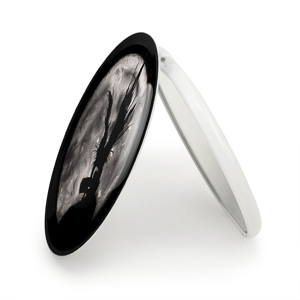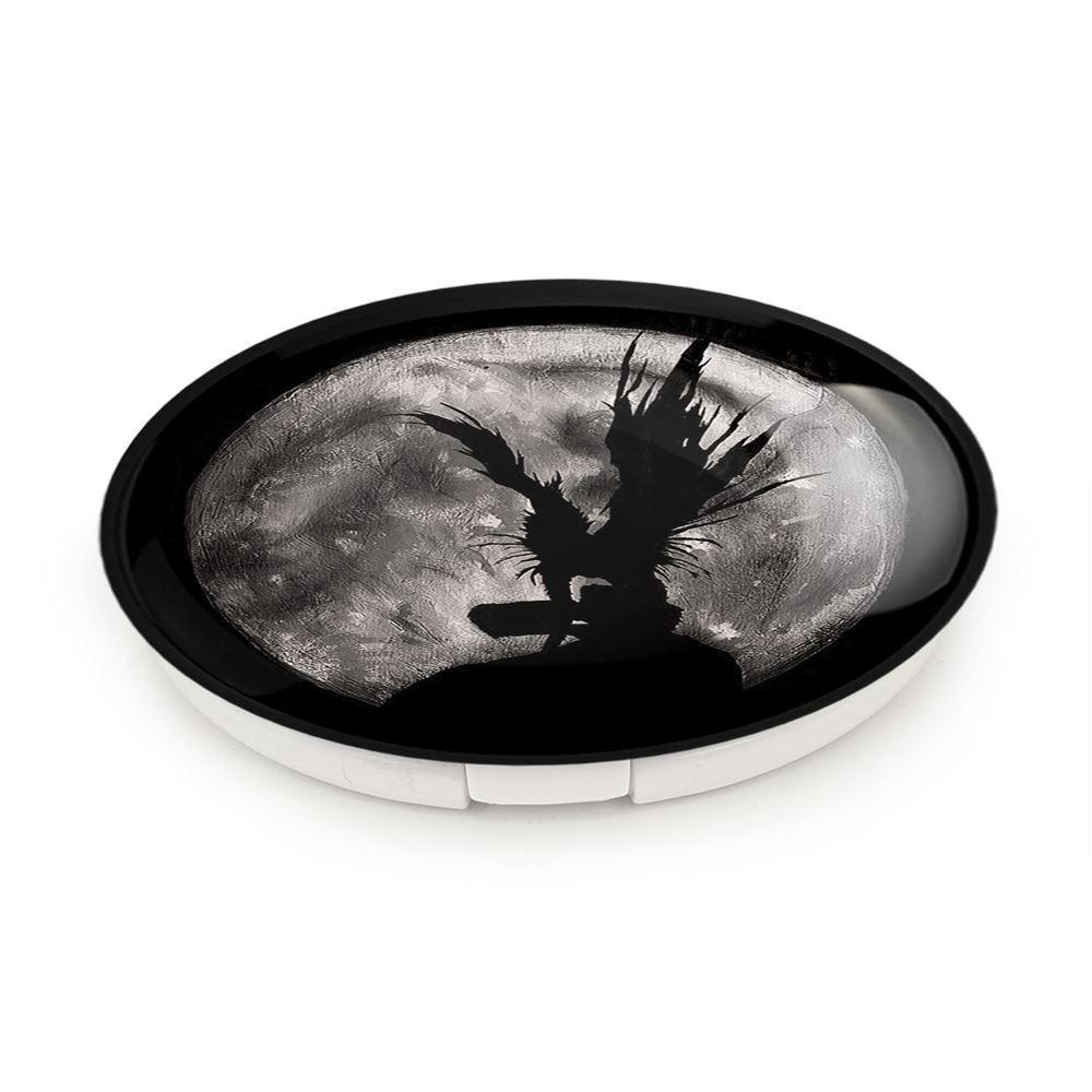 آینه های تاشو شینیگامی ریوک انیمه دفترچه مرگ Death Note خندالو، از جنس پلاستیک فشرده ABS تولید شده و به رنگ سفید می باشد. یکی از آینه ها ابعاد واقعی را نشان داده و دیگری با قابلیت بزرگنمایی، جزئیات را بهتر نمایش می دهد. ابعاد هر یک از آینه ها، دایره ای به قطر 7.5 سانت می باشد که نه خیلی بزرگ و غیر قابل استفاده در کیف آرایشی ست و نه خیلی کوچک که تصویر خاصی در آن مشاهده نشود. آینه تاشو شینیگامی ریوک انیمه دفترچه مرگ Death Note سایزی استاندارد و کارآمد دارد و در هر کیفی جا میگیرد. چاپ طرح بوسیله چاپگرهای دیجیتال شش رنگ با شفافیت و کیفیتی مثال زدنی بر روی یک وجه از بدنه ی آینه انجام گرفته و با روکش لمینت حرارتی پوشیده شده که در مقابل آسیب و خط و خش مقاوم بوده و کیفیت بالایی دارد. درب آینه بوسیله قفل بدنه ی آن، باز نمی ماند و کاملا بسته می شود و مناسب قرار گیری در کیف لوازم آرایش و کیف های کوچک دستی نیز هست. آینه های تاشو شینیگامی ریوک انیمه دفترچه مرگ Death Note خندالو با تنوع طرحی بسیار بالا، سلیقه هر نوع مخاطبی را تامین میکند.