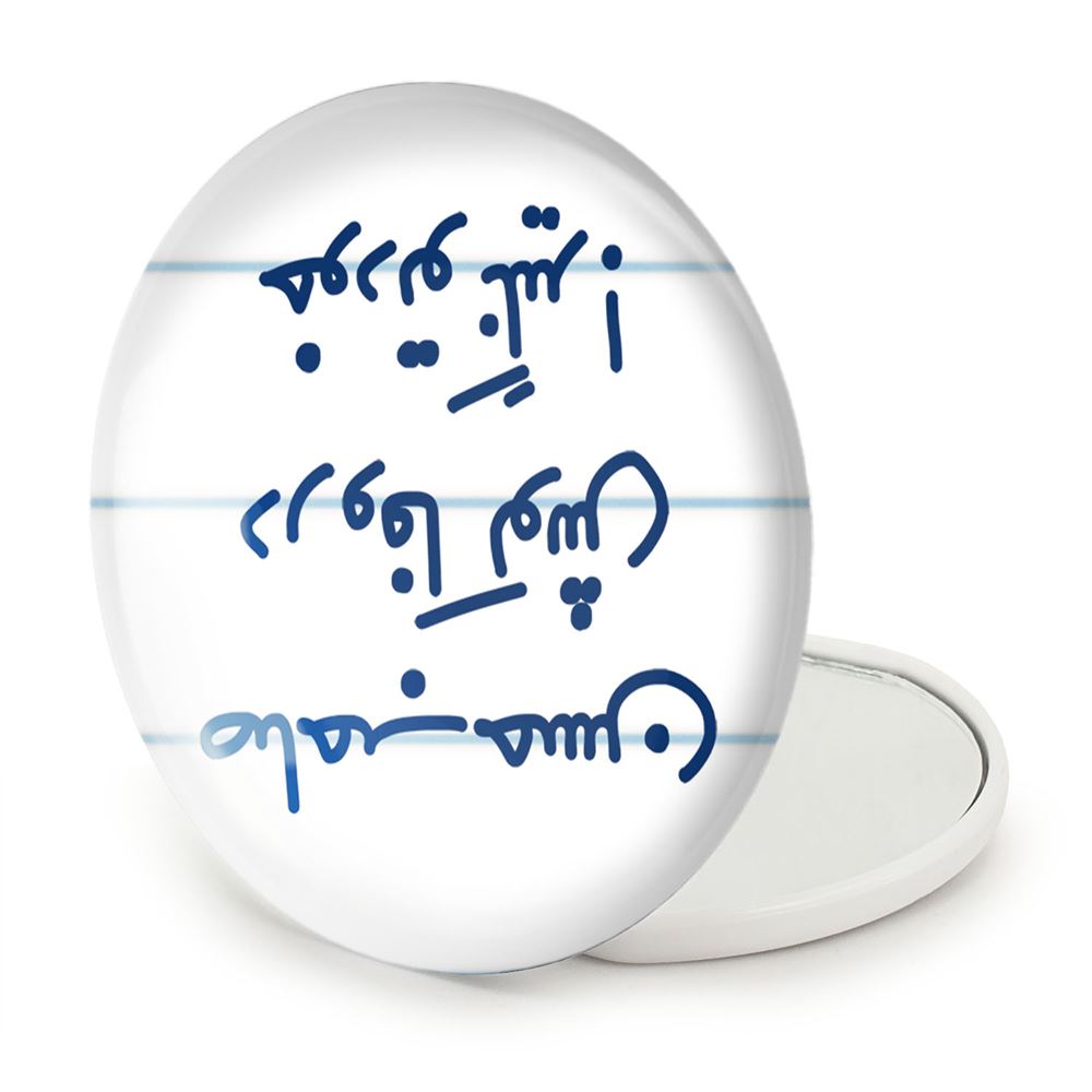 آینه های تاشو صاحب حسن در وفا کوش خودتو نگیر! خندالو، از جنس پلاستیک فشرده ABS تولید شده و به رنگ سفید می باشد. یکی از آینه ها ابعاد واقعی را نشان داده و دیگری با قابلیت بزرگنمایی، جزئیات را بهتر نمایش می دهد. ابعاد هر یک از آینه ها، دایره ای به قطر 7.5 سانت می باشد که نه خیلی بزرگ و غیر قابل استفاده در کیف آرایشی ست و نه خیلی کوچک که تصویر خاصی در آن مشاهده نشود. آینه تاشو صاحب حسن در وفا کوش خودتو نگیر! سایزی استاندارد و کارآمد دارد و در هر کیفی جا میگیرد. چاپ طرح بوسیله چاپگرهای دیجیتال شش رنگ با شفافیت و کیفیتی مثال زدنی بر روی یک وجه از بدنه ی آینه انجام گرفته و با روکش لمینت حرارتی پوشیده شده که در مقابل آسیب و خط و خش مقاوم بوده و کیفیت بالایی دارد. درب آینه بوسیله قفل بدنه ی آن، باز نمی ماند و کاملا بسته می شود و مناسب قرار گیری در کیف لوازم آرایش و کیف های کوچک دستی نیز هست. آینه های تاشو صاحب حسن در وفا کوش خودتو نگیر! خندالو با تنوع طرحی بسیار بالا، سلیقه هر نوع مخاطبی را تامین میکند.