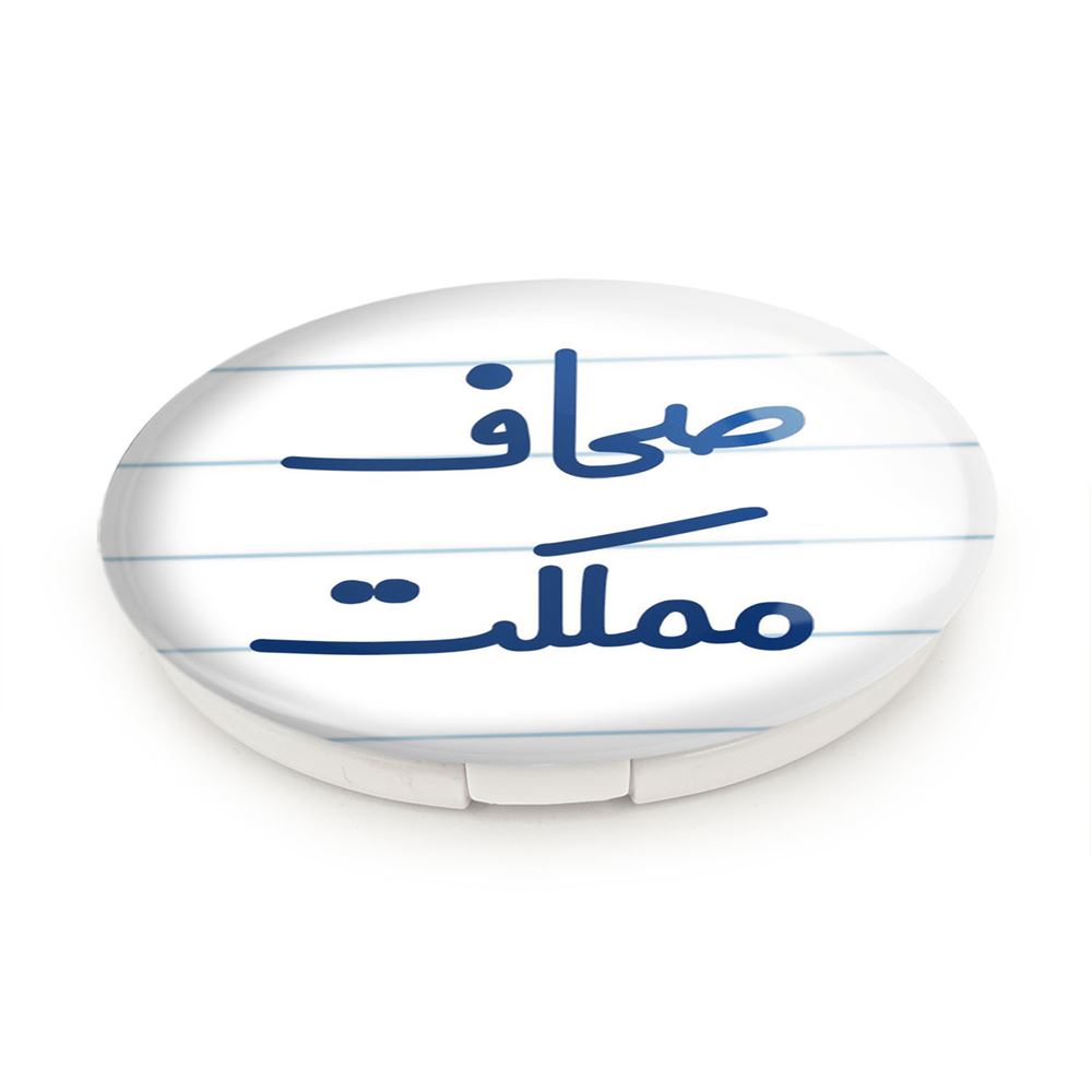 آینه های تاشو صحاف مملکت خندالو، از جنس پلاستیک فشرده ABS تولید شده و به رنگ سفید می باشد. یکی از آینه ها ابعاد واقعی را نشان داده و دیگری با قابلیت بزرگنمایی، جزئیات را بهتر نمایش می دهد. ابعاد هر یک از آینه ها، دایره ای به قطر 7.5 سانت می باشد که نه خیلی بزرگ و غیر قابل استفاده در کیف آرایشی ست و نه خیلی کوچک که تصویر خاصی در آن مشاهده نشود. آینه تاشو صحاف مملکت سایزی استاندارد و کارآمد دارد و در هر کیفی جا میگیرد. چاپ طرح بوسیله چاپگرهای دیجیتال شش رنگ با شفافیت و کیفیتی مثال زدنی بر روی یک وجه از بدنه ی آینه انجام گرفته و با روکش لمینت حرارتی پوشیده شده که در مقابل آسیب و خط و خش مقاوم بوده و کیفیت بالایی دارد. درب آینه بوسیله قفل بدنه ی آن، باز نمی ماند و کاملا بسته می شود و مناسب قرار گیری در کیف لوازم آرایش و کیف های کوچک دستی نیز هست. آینه های تاشو صحاف مملکت خندالو با تنوع طرحی بسیار بالا، سلیقه هر نوع مخاطبی را تامین میکند.