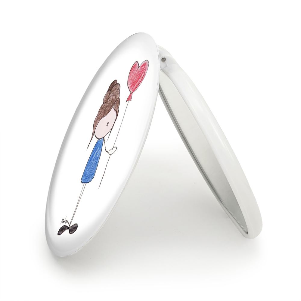 آینه های تاشو عاشقانه خندالو، از جنس پلاستیک فشرده ABS تولید شده و به رنگ سفید می باشد. یکی از آینه ها ابعاد واقعی را نشان داده و دیگری با قابلیت بزرگنمایی، جزئیات را بهتر نمایش می دهد.