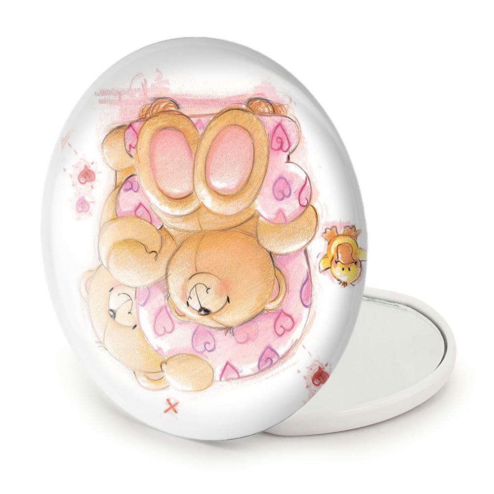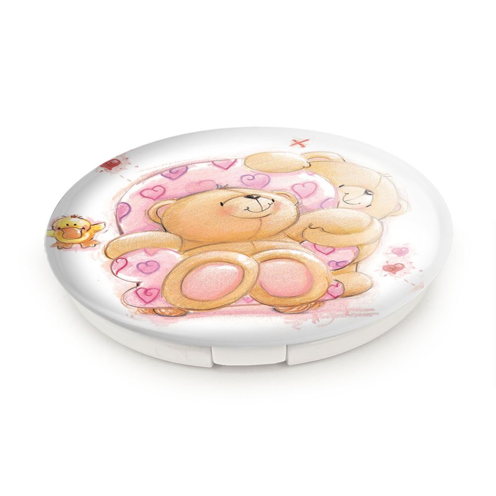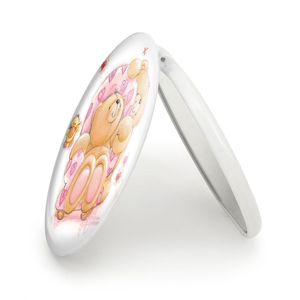 آینه های تاشو عاشقانه خندالو، از جنس پلاستیک فشرده ABS تولید شده و به رنگ سفید می باشد. یکی از آینه ها ابعاد واقعی را نشان داده و دیگری با قابلیت بزرگنمایی، جزئیات را بهتر نمایش می دهد.