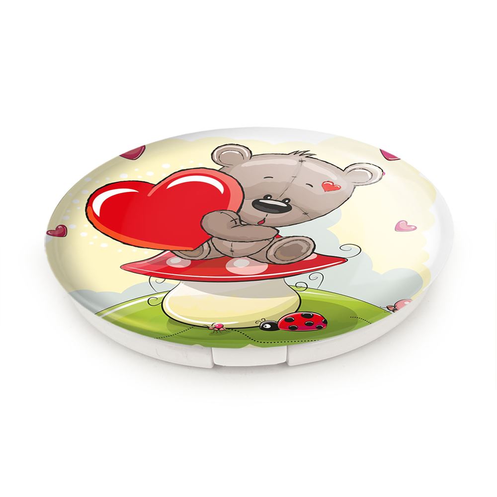 آینه های تاشو عاشقانه خندالو، از جنس پلاستیک فشرده ABS تولید شده و به رنگ سفید می باشد. یکی از آینه ها ابعاد واقعی را نشان داده و دیگری با قابلیت بزرگنمایی، جزئیات را بهتر نمایش می دهد.