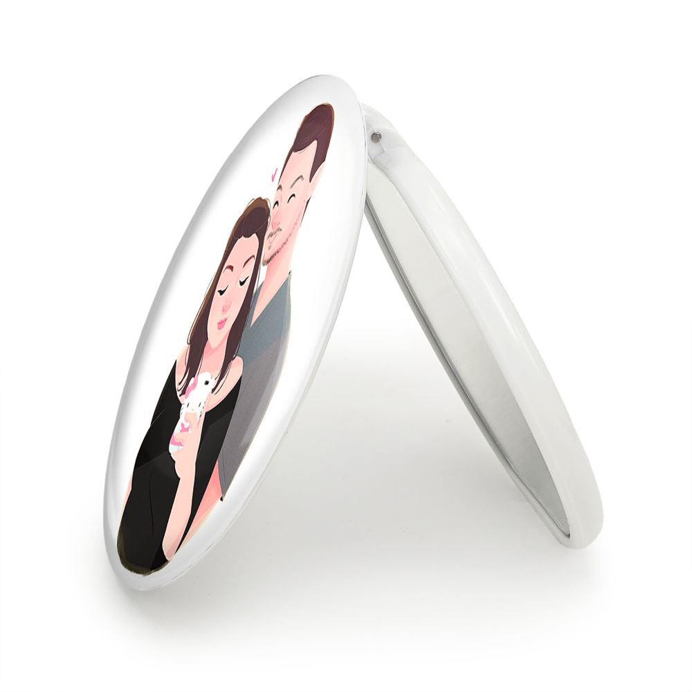 آینه های تاشو عاشقانه خندالو، از جنس پلاستیک فشرده ABS تولید شده و به رنگ سفید می باشد. یکی از آینه ها ابعاد واقعی را نشان داده و دیگری با قابلیت بزرگنمایی، جزئیات را بهتر نمایش می دهد.
