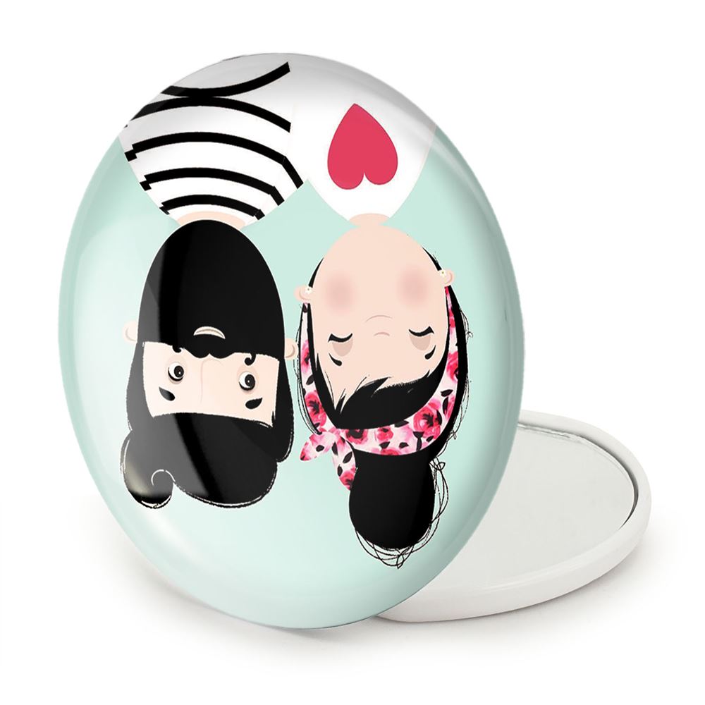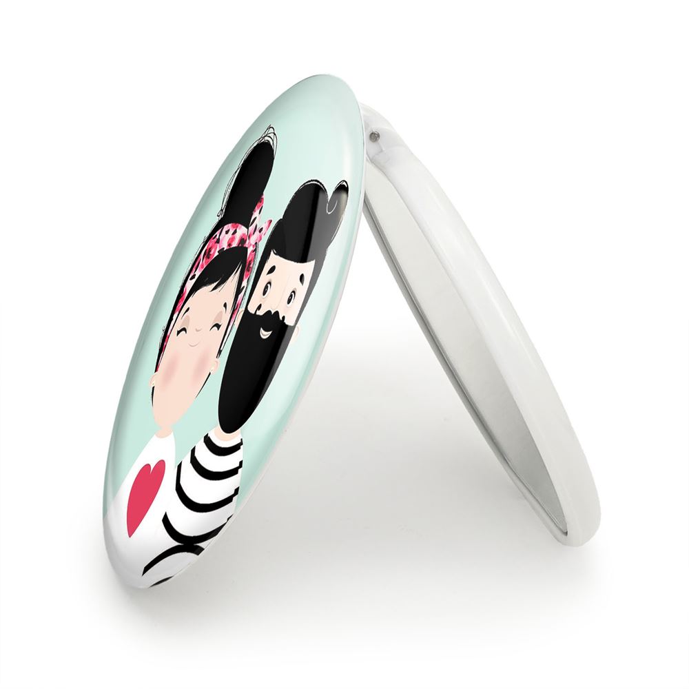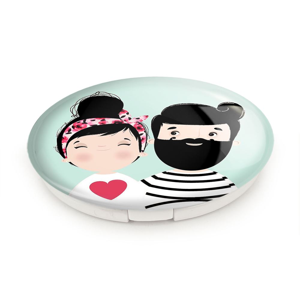 آینه های تاشو عاشقانه خندالو، از جنس پلاستیک فشرده ABS تولید شده و به رنگ سفید می باشد. یکی از آینه ها ابعاد واقعی را نشان داده و دیگری با قابلیت بزرگنمایی، جزئیات را بهتر نمایش می دهد.