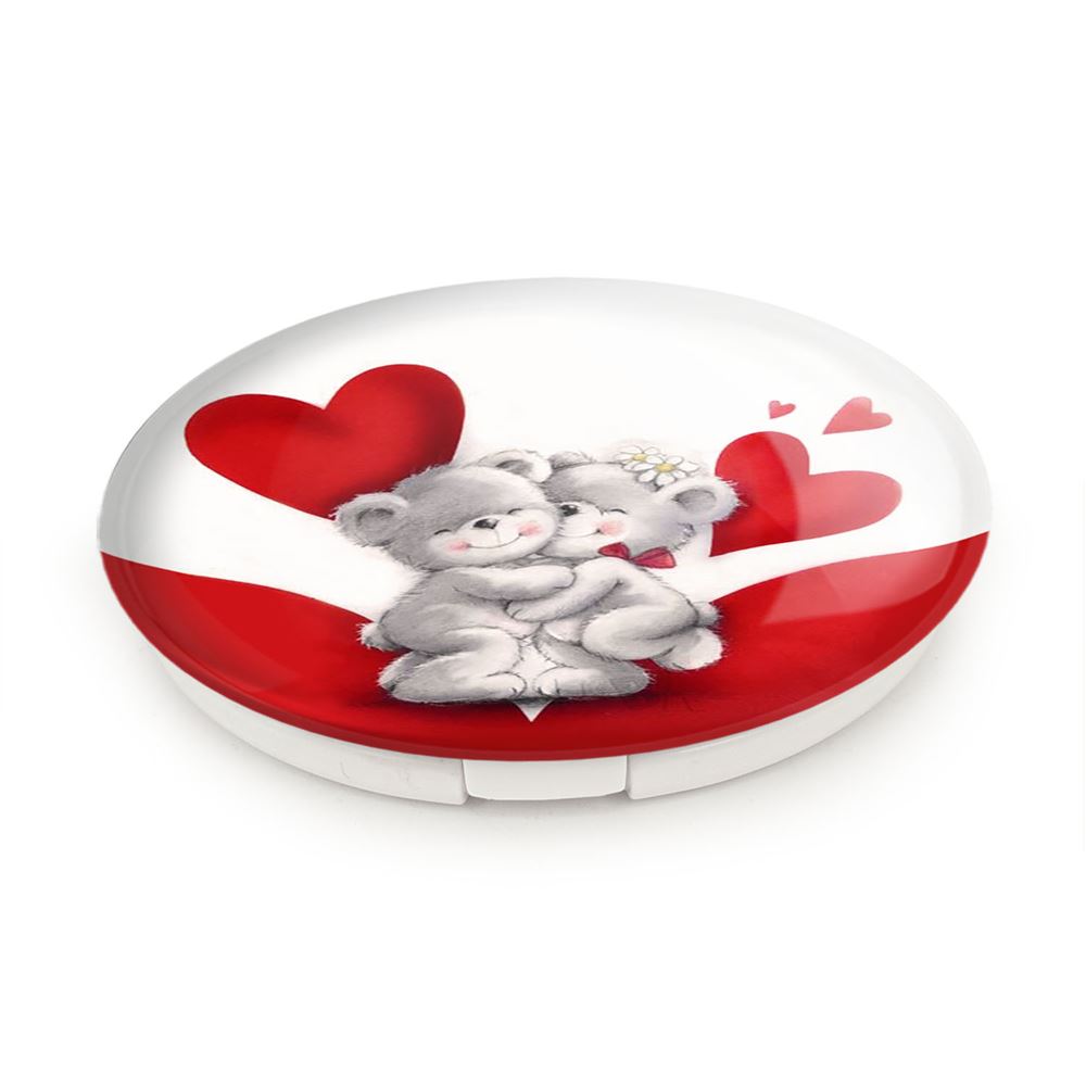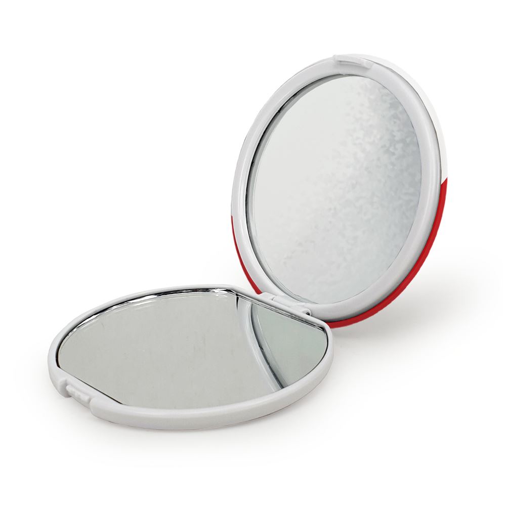 آینه های تاشو عاشقانه خندالو، از جنس پلاستیک فشرده ABS تولید شده و به رنگ سفید می باشد. یکی از آینه ها ابعاد واقعی را نشان داده و دیگری با قابلیت بزرگنمایی، جزئیات را بهتر نمایش می دهد.