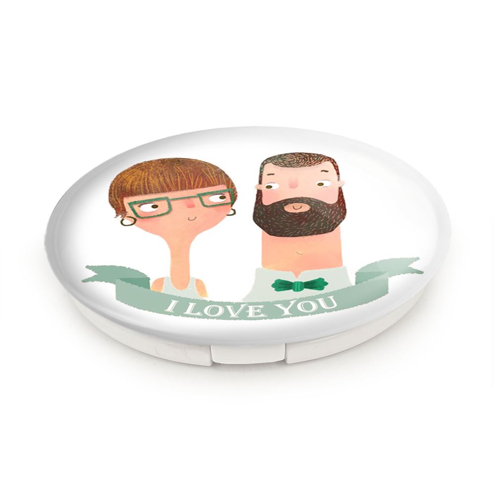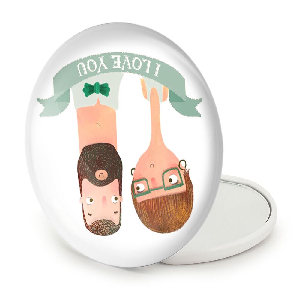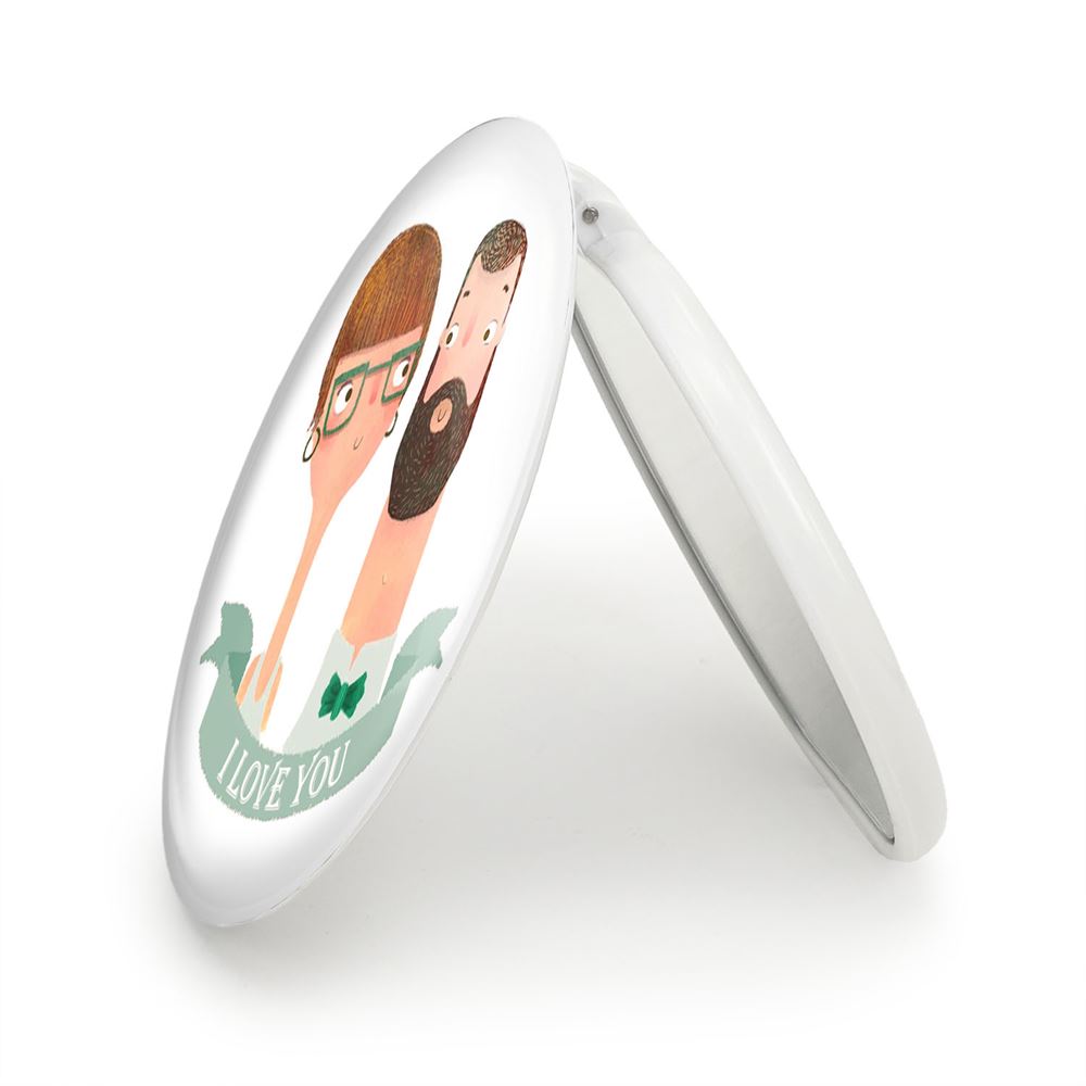 آینه های تاشو عاشقانه خندالو، از جنس پلاستیک فشرده ABS تولید شده و به رنگ سفید می باشد. یکی از آینه ها ابعاد واقعی را نشان داده و دیگری با قابلیت بزرگنمایی، جزئیات را بهتر نمایش می دهد.
