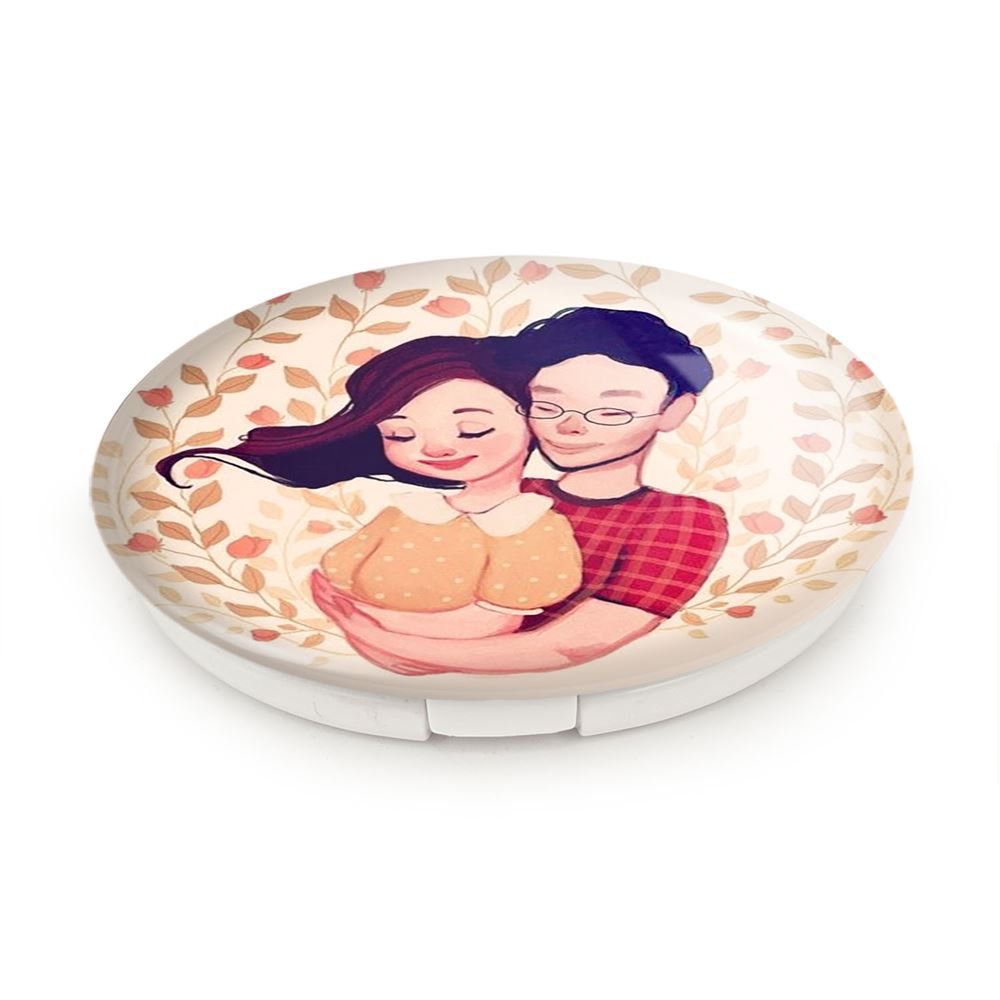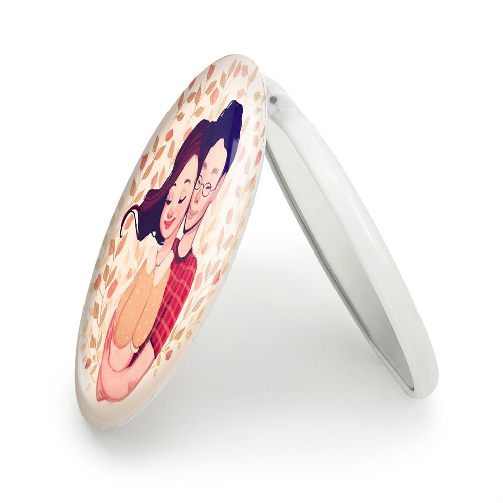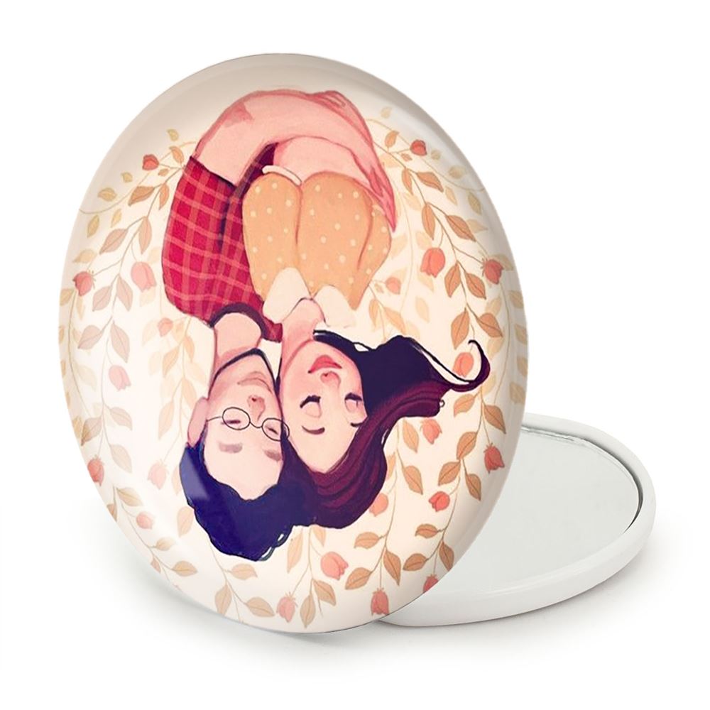آینه های تاشو عاشقانه خندالو، از جنس پلاستیک فشرده ABS تولید شده و به رنگ سفید می باشد. یکی از آینه ها ابعاد واقعی را نشان داده و دیگری با قابلیت بزرگنمایی، جزئیات را بهتر نمایش می دهد.