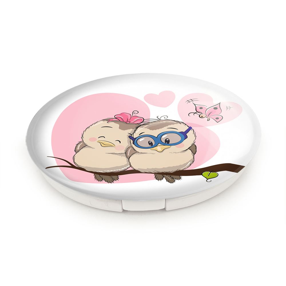 آینه های تاشو عاشقانه خندالو، از جنس پلاستیک فشرده ABS تولید شده و به رنگ سفید می باشد. یکی از آینه ها ابعاد واقعی را نشان داده و دیگری با قابلیت بزرگنمایی، جزئیات را بهتر نمایش می دهد.