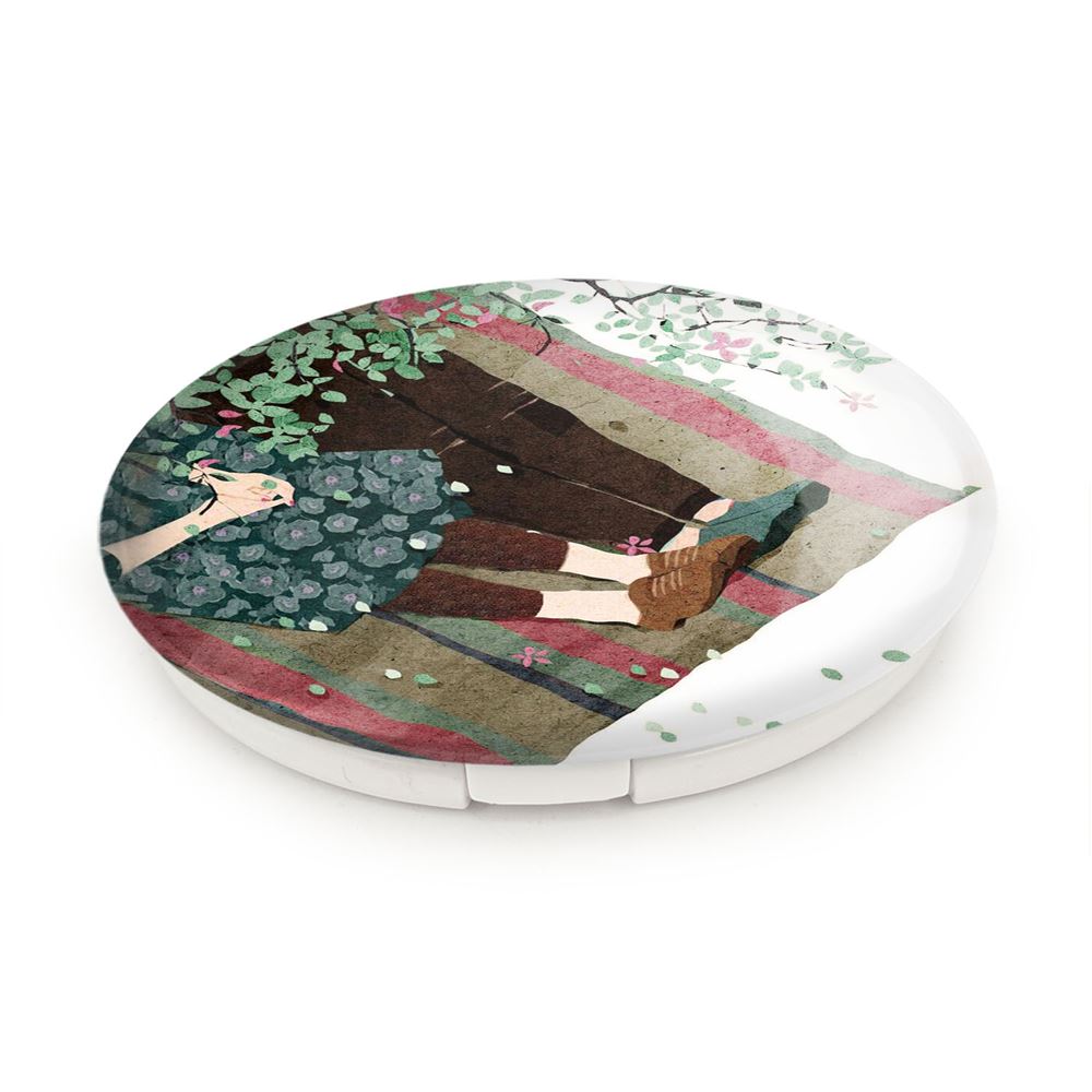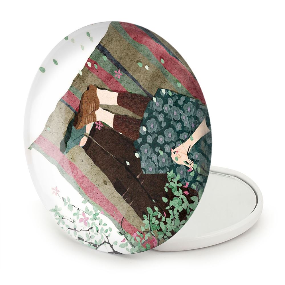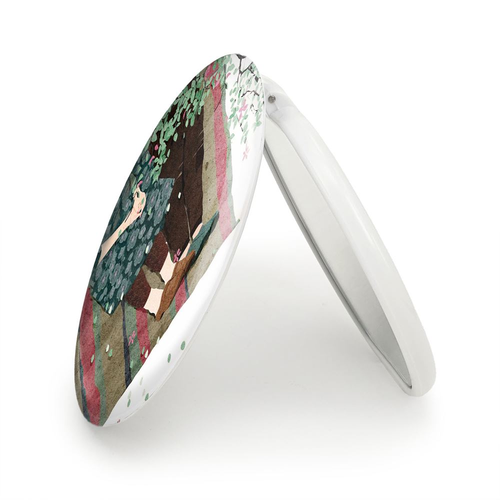 آینه های تاشو عاشقانه خندالو، از جنس پلاستیک فشرده ABS تولید شده و به رنگ سفید می باشد. یکی از آینه ها ابعاد واقعی را نشان داده و دیگری با قابلیت بزرگنمایی، جزئیات را بهتر نمایش می دهد.