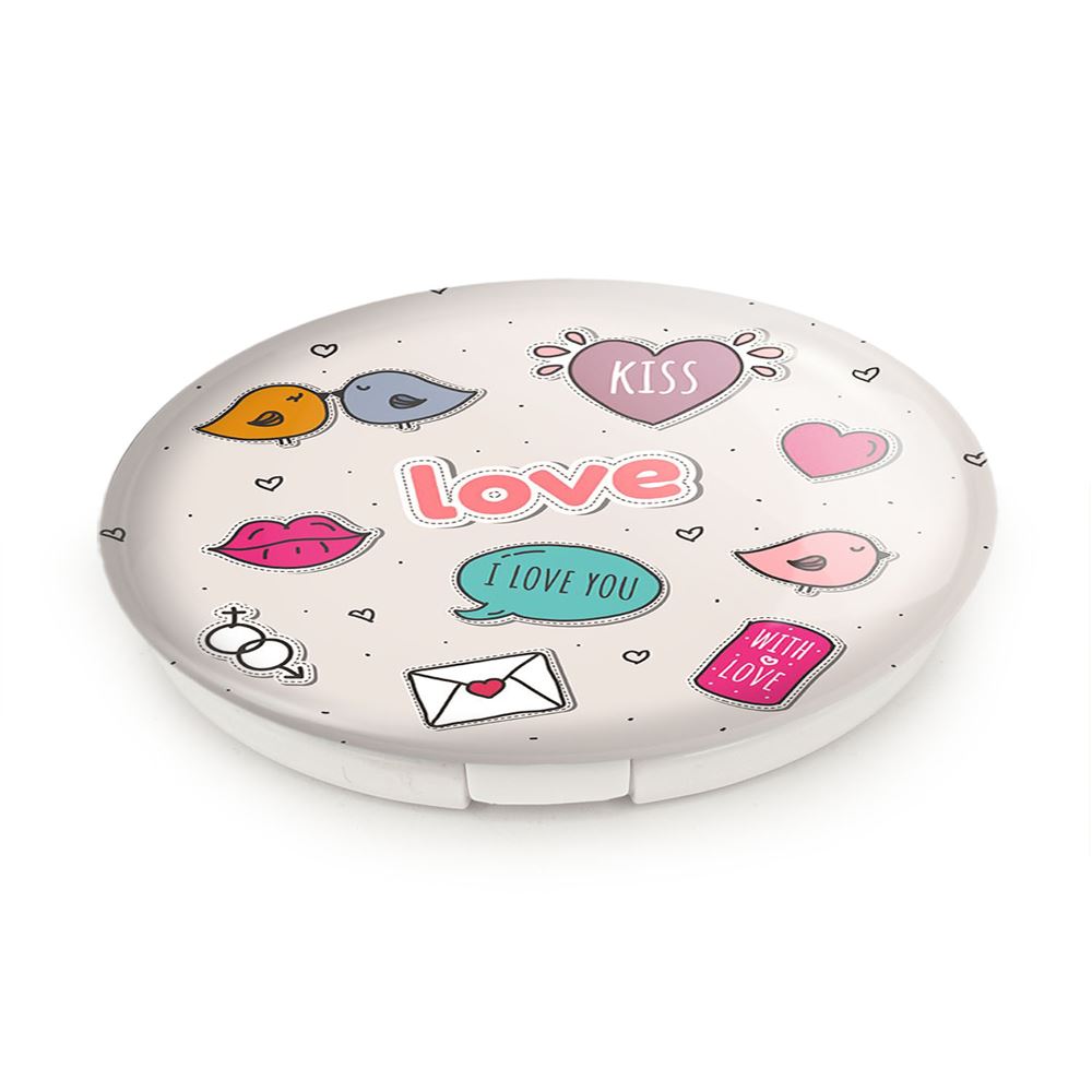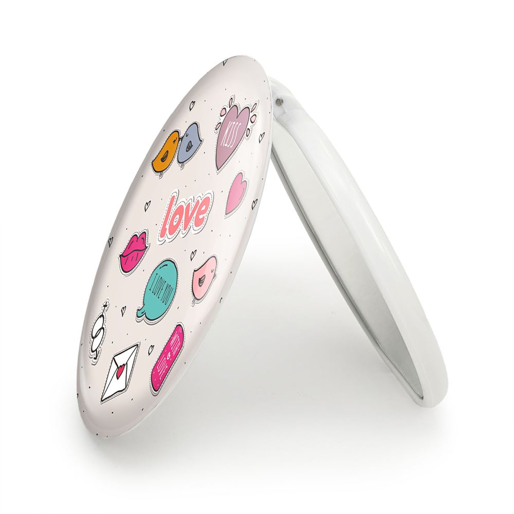 آینه های تاشو عاشقانه خندالو، از جنس پلاستیک فشرده ABS تولید شده و به رنگ سفید می باشد. یکی از آینه ها ابعاد واقعی را نشان داده و دیگری با قابلیت بزرگنمایی، جزئیات را بهتر نمایش می دهد.