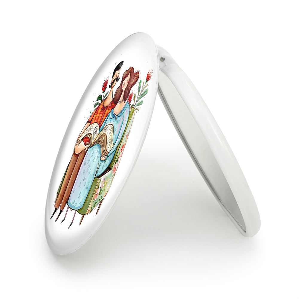 آینه های تاشو عاشقانه خندالو، از جنس پلاستیک فشرده ABS تولید شده و به رنگ سفید می باشد. یکی از آینه ها ابعاد واقعی را نشان داده و دیگری با قابلیت بزرگنمایی، جزئیات را بهتر نمایش می دهد.