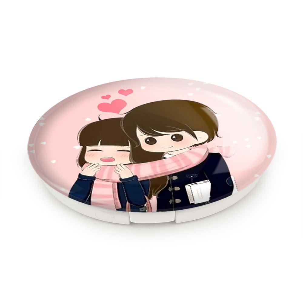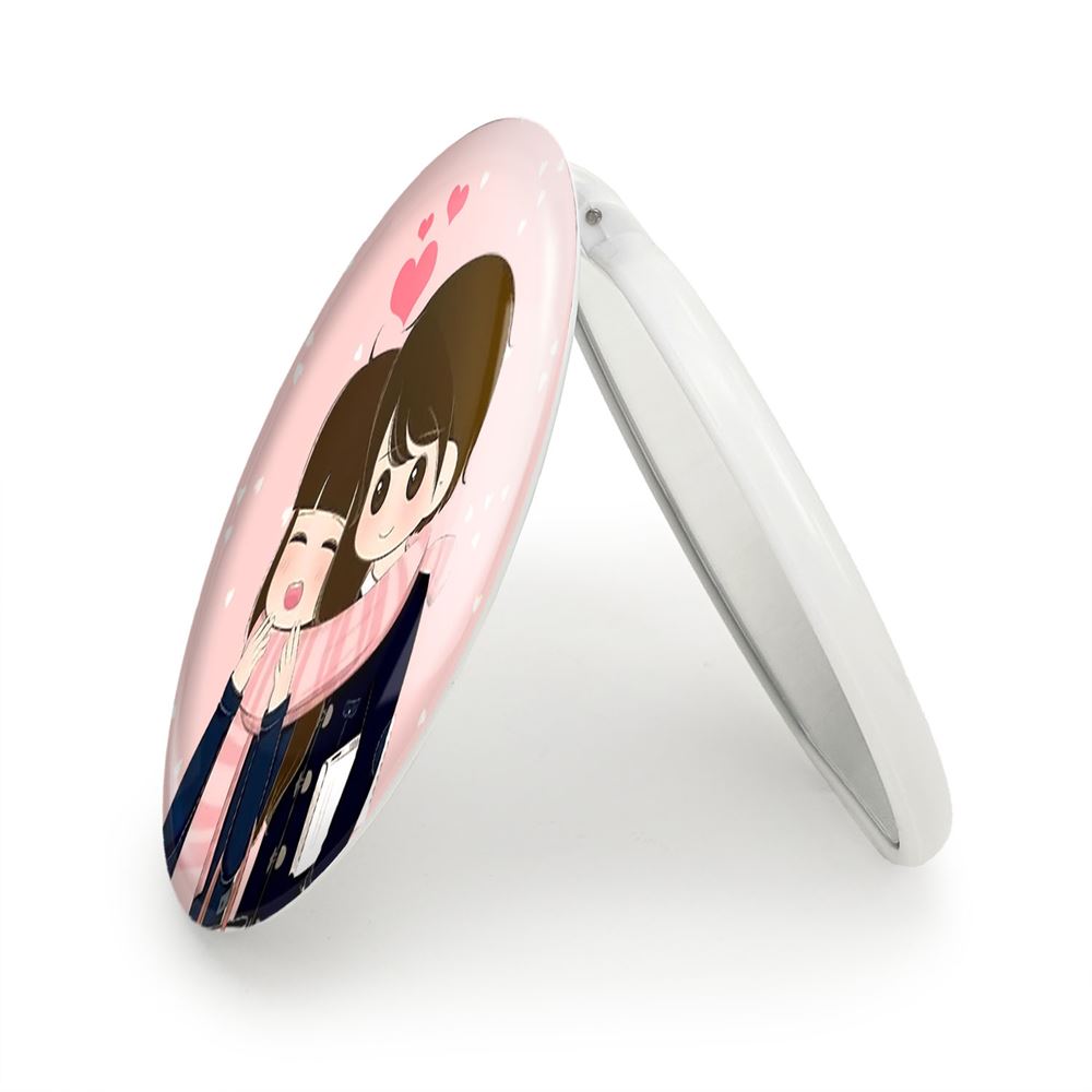 آینه های تاشو عاشقانه خندالو، از جنس پلاستیک فشرده ABS تولید شده و به رنگ سفید می باشد. یکی از آینه ها ابعاد واقعی را نشان داده و دیگری با قابلیت بزرگنمایی، جزئیات را بهتر نمایش می دهد.