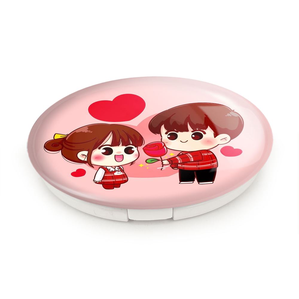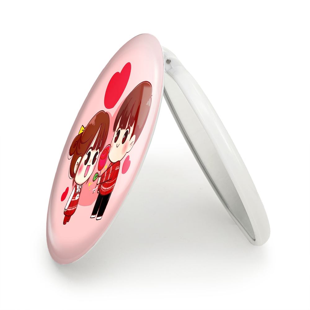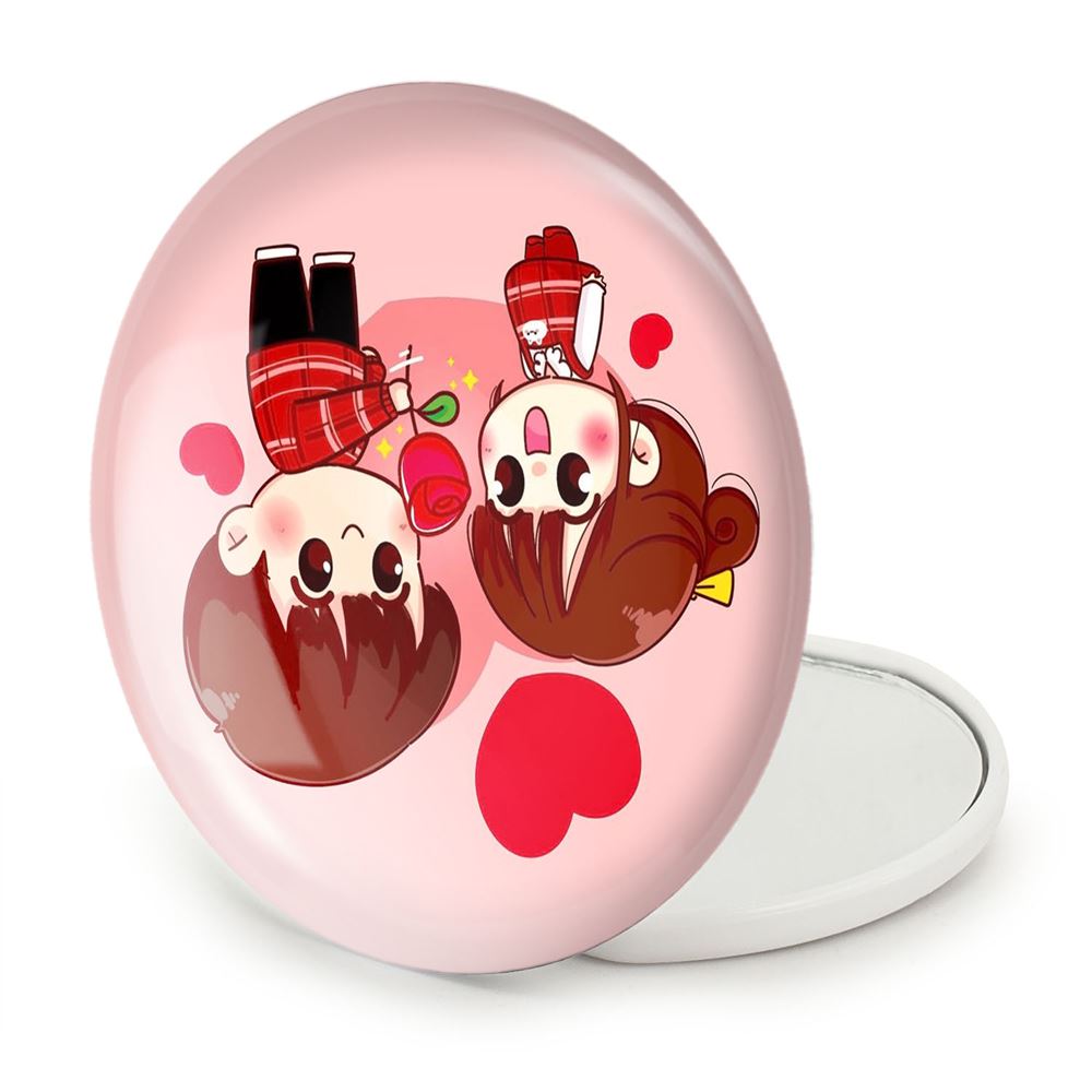 آینه های تاشو عاشقانه خندالو، از جنس پلاستیک فشرده ABS تولید شده و به رنگ سفید می باشد. یکی از آینه ها ابعاد واقعی را نشان داده و دیگری با قابلیت بزرگنمایی، جزئیات را بهتر نمایش می دهد.
