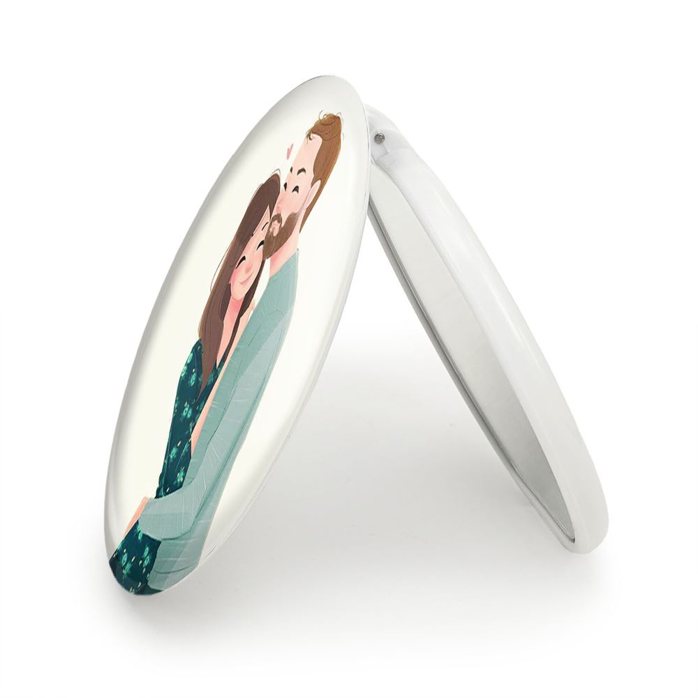 آینه های تاشو عاشقانه خندالو، از جنس پلاستیک فشرده ABS تولید شده و به رنگ سفید می باشد. یکی از آینه ها ابعاد واقعی را نشان داده و دیگری با قابلیت بزرگنمایی، جزئیات را بهتر نمایش می دهد.