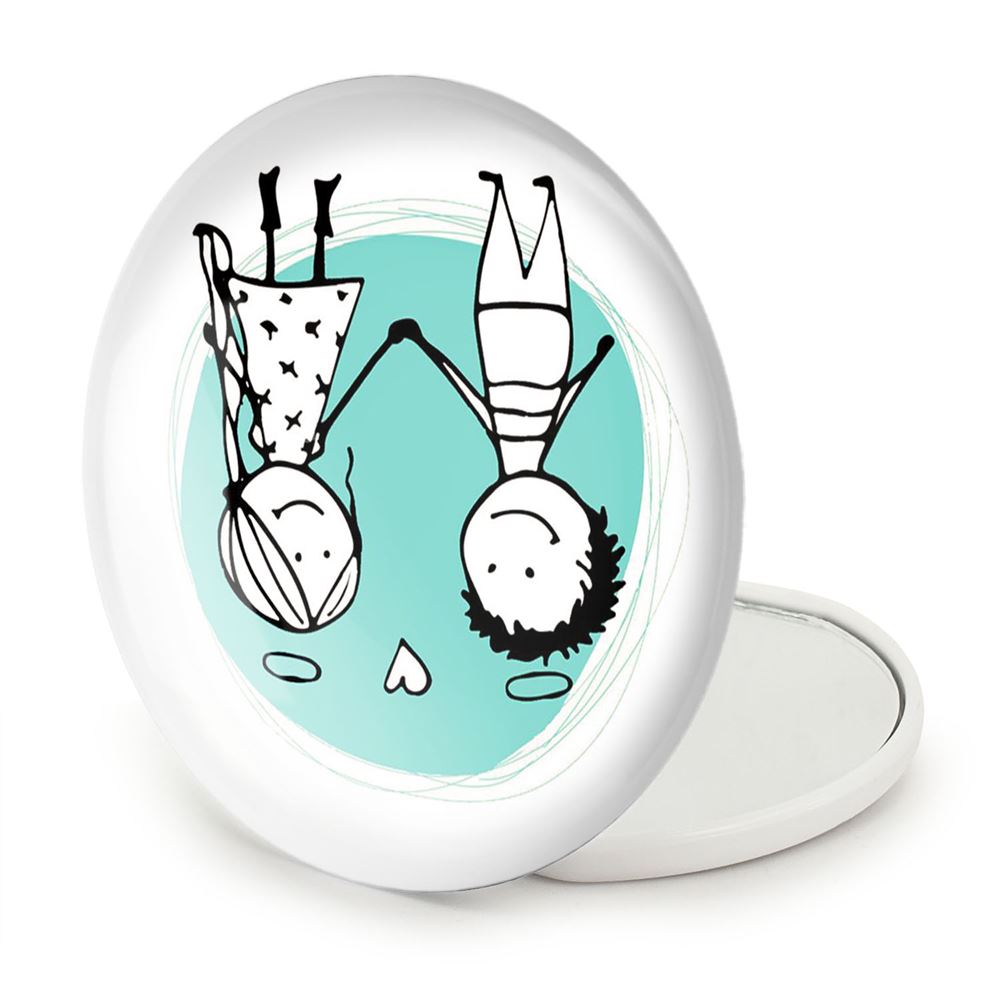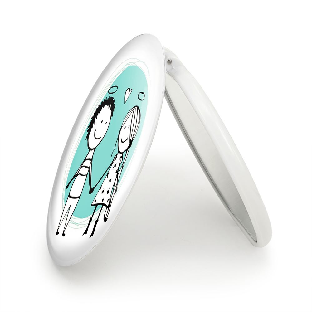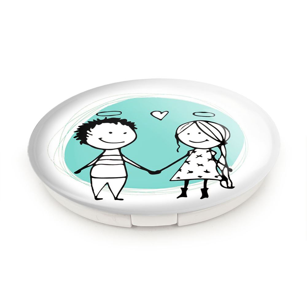 آینه های تاشو عاشقانه خندالو، از جنس پلاستیک فشرده ABS تولید شده و به رنگ سفید می باشد. یکی از آینه ها ابعاد واقعی را نشان داده و دیگری با قابلیت بزرگنمایی، جزئیات را بهتر نمایش می دهد.