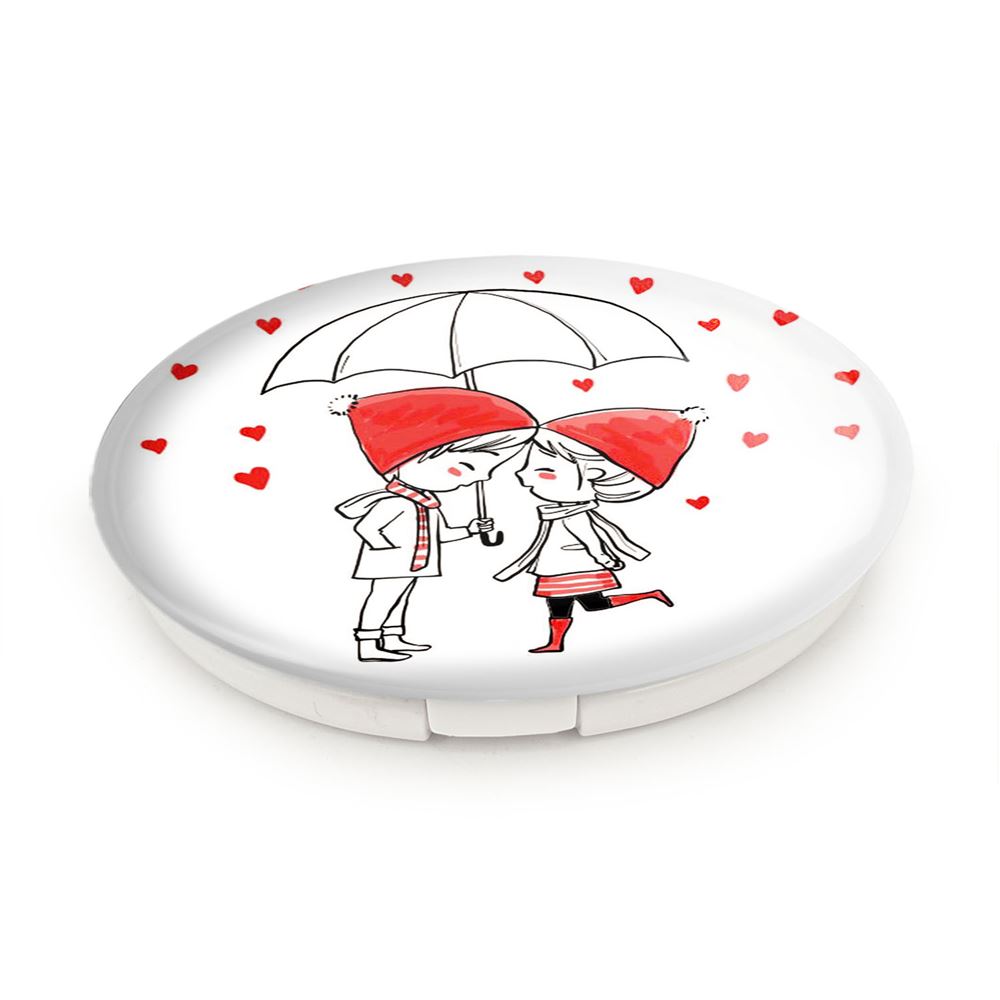 آینه های تاشو عاشقانه خندالو، از جنس پلاستیک فشرده ABS تولید شده و به رنگ سفید می باشد. یکی از آینه ها ابعاد واقعی را نشان داده و دیگری با قابلیت بزرگنمایی، جزئیات را بهتر نمایش می دهد.