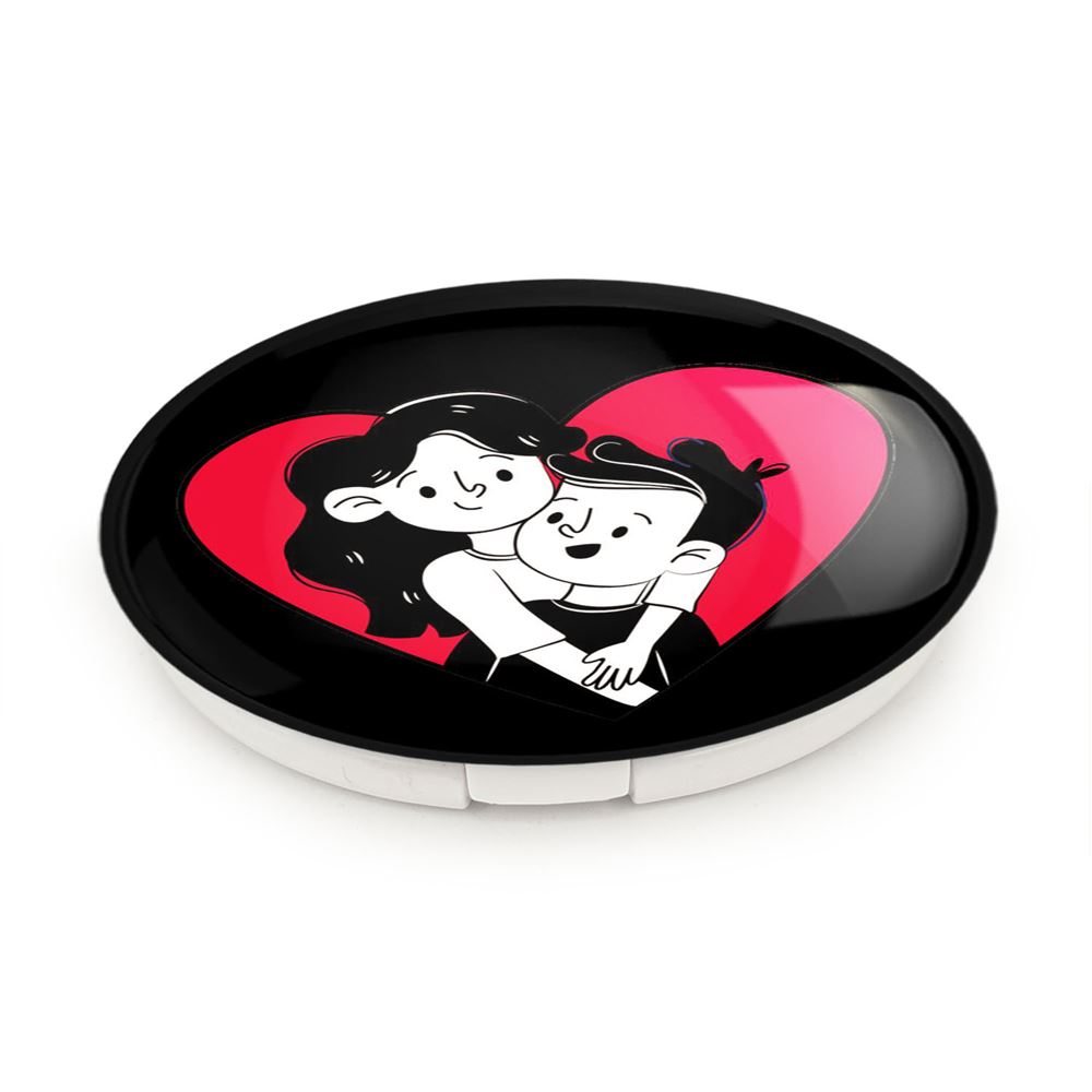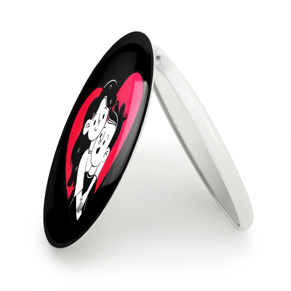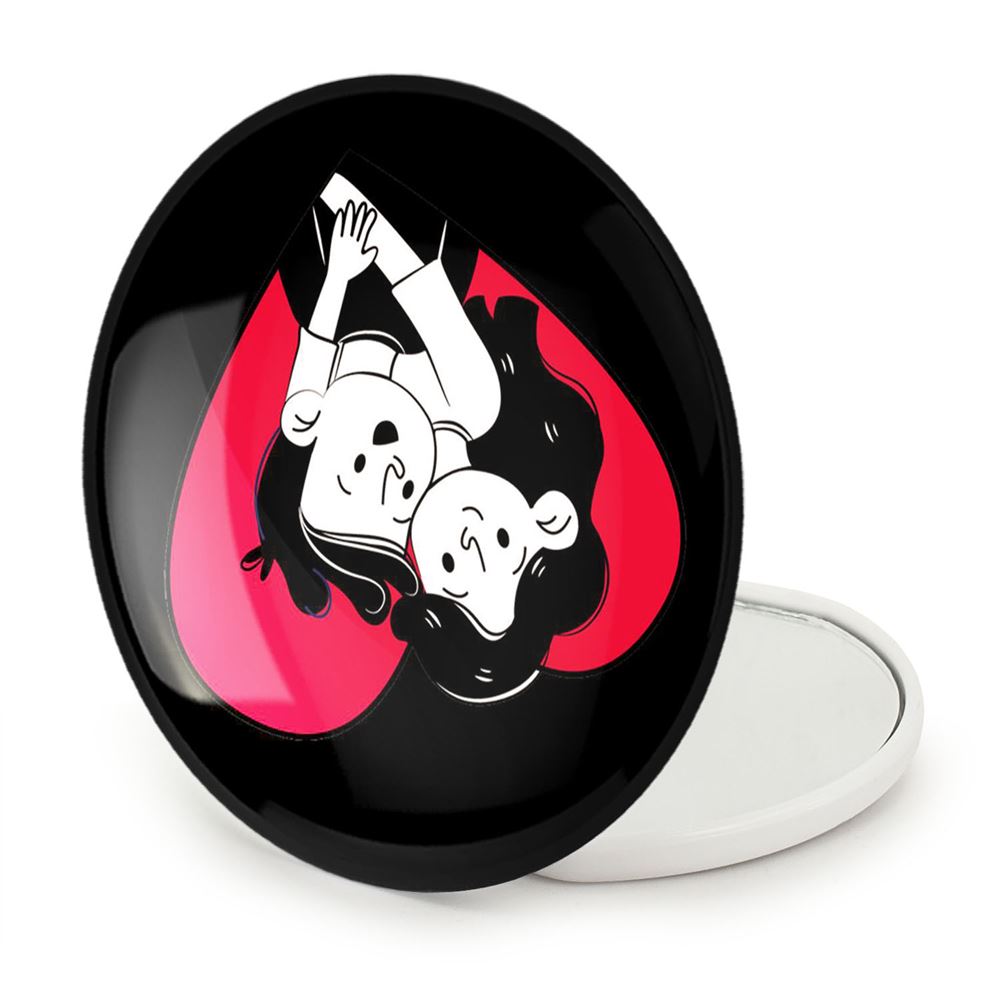 آینه های تاشو عاشقانه خندالو، از جنس پلاستیک فشرده ABS تولید شده و به رنگ سفید می باشد. یکی از آینه ها ابعاد واقعی را نشان داده و دیگری با قابلیت بزرگنمایی، جزئیات را بهتر نمایش می دهد.