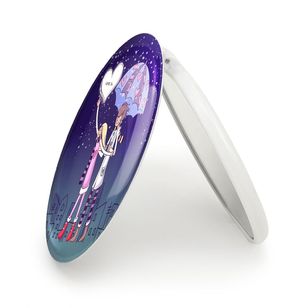 آینه های تاشو عاشقانه خندالو، از جنس پلاستیک فشرده ABS تولید شده و به رنگ سفید می باشد. یکی از آینه ها ابعاد واقعی را نشان داده و دیگری با قابلیت بزرگنمایی، جزئیات را بهتر نمایش می دهد.