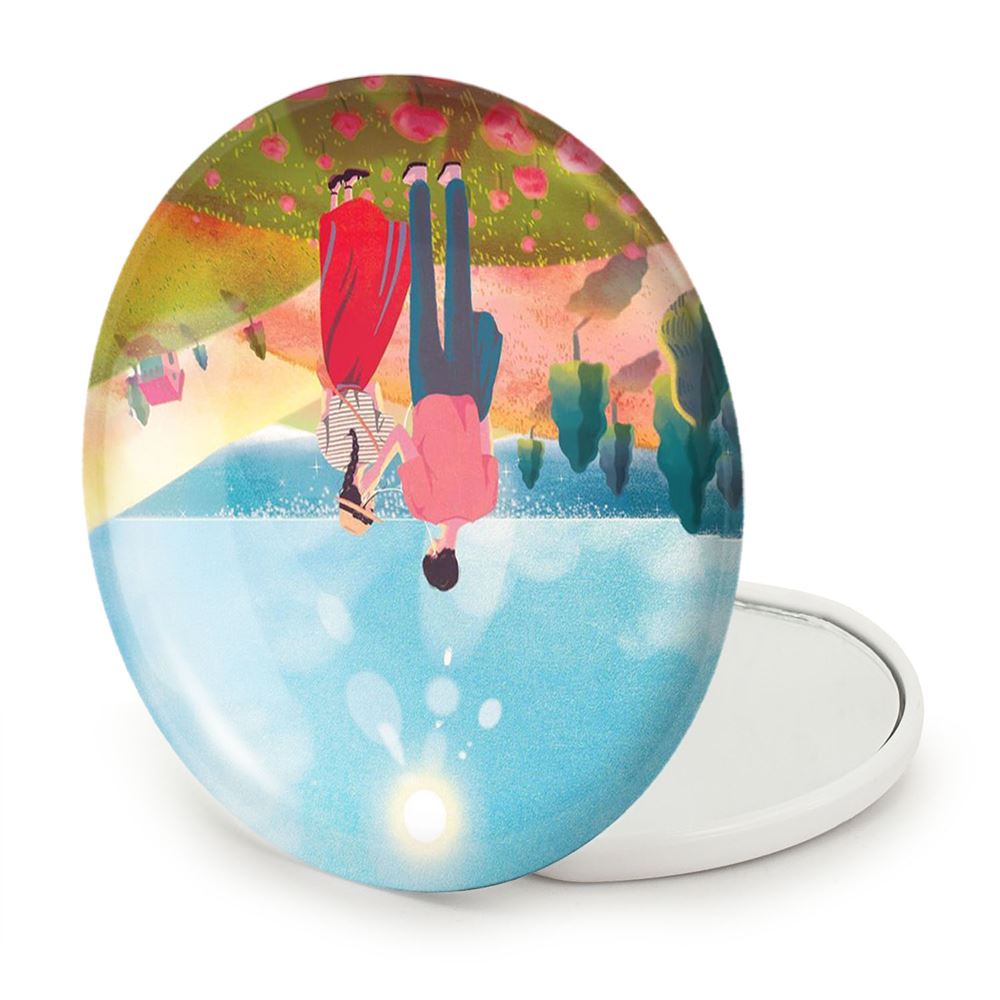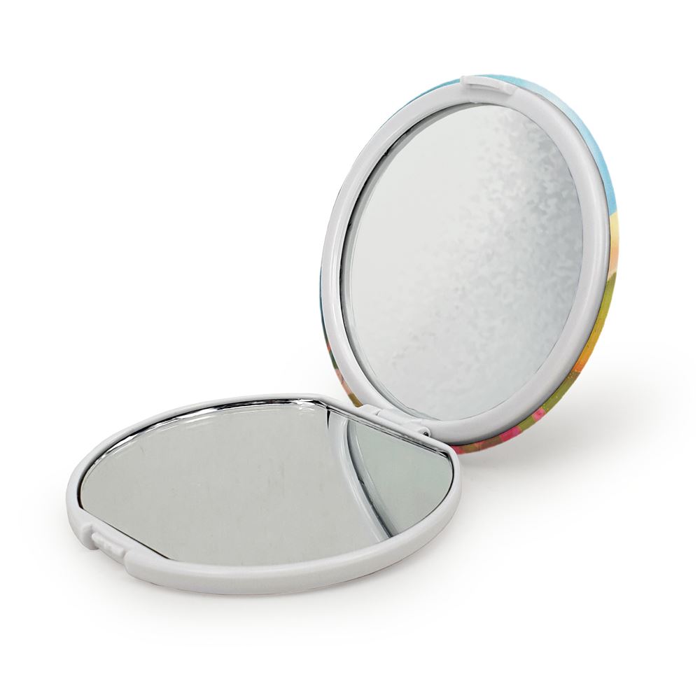آینه های تاشو عاشقانه خندالو، از جنس پلاستیک فشرده ABS تولید شده و به رنگ سفید می باشد. یکی از آینه ها ابعاد واقعی را نشان داده و دیگری با قابلیت بزرگنمایی، جزئیات را بهتر نمایش می دهد.