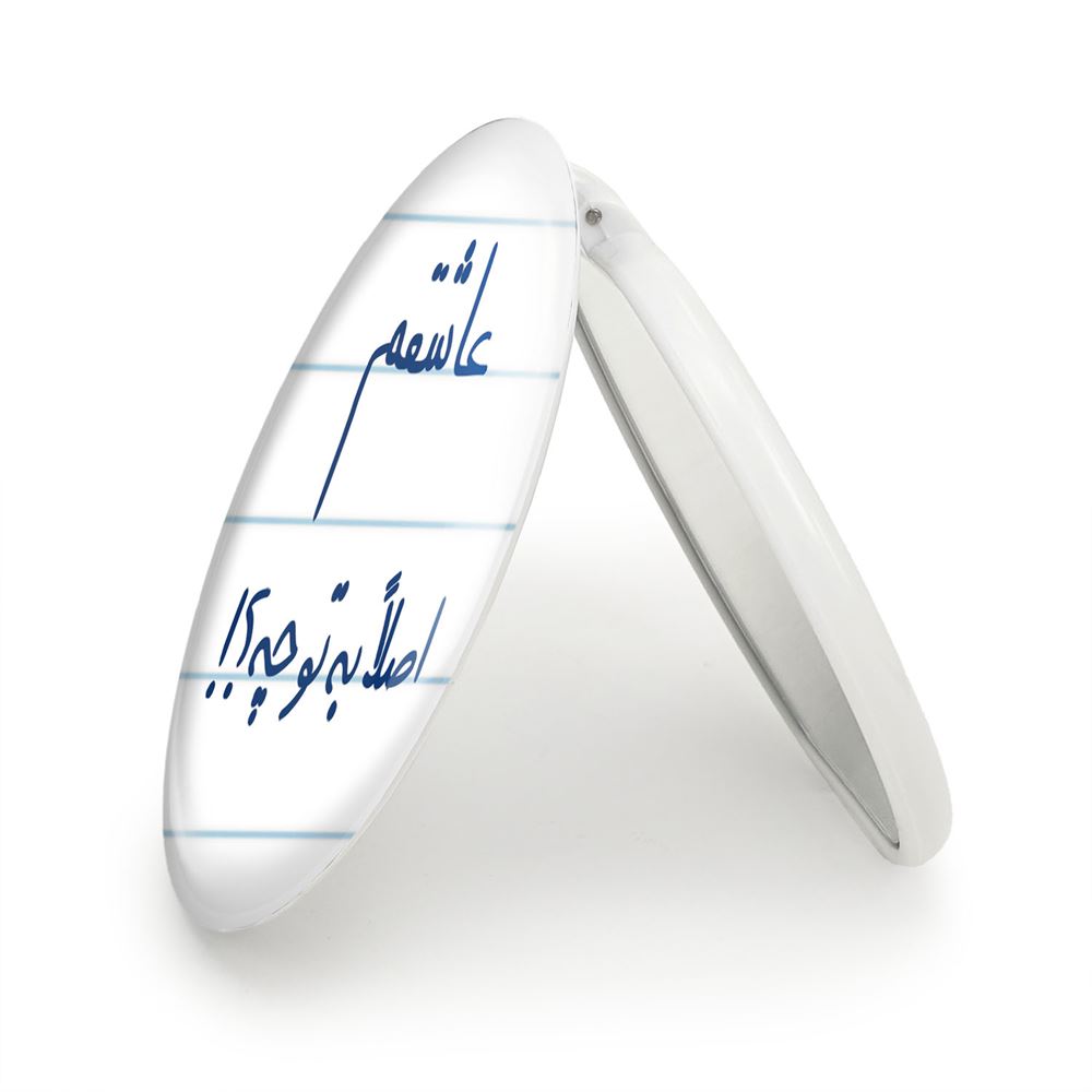 آینه های تاشو عاشقم اصلا به تو چه ؟! خندالو، از جنس پلاستیک فشرده ABS تولید شده و به رنگ سفید می باشد. یکی از آینه ها ابعاد واقعی را نشان داده و دیگری با قابلیت بزرگنمایی، جزئیات را بهتر نمایش می دهد. ابعاد هر یک از آینه ها، دایره ای به قطر 7.5 سانت می باشد که نه خیلی بزرگ و غیر قابل استفاده در کیف آرایشی ست و نه خیلی کوچک که تصویر خاصی در آن مشاهده نشود. آینه تاشو عاشقم اصلا به تو چه ؟! سایزی استاندارد و کارآمد دارد و در هر کیفی جا میگیرد. چاپ طرح بوسیله چاپگرهای دیجیتال شش رنگ با شفافیت و کیفیتی مثال زدنی بر روی یک وجه از بدنه ی آینه انجام گرفته و با روکش لمینت حرارتی پوشیده شده که در مقابل آسیب و خط و خش مقاوم بوده و کیفیت بالایی دارد. درب آینه بوسیله قفل بدنه ی آن، باز نمی ماند و کاملا بسته می شود و مناسب قرار گیری در کیف لوازم آرایش و کیف های کوچک دستی نیز هست. آینه های تاشو عاشقم اصلا به تو چه ؟! خندالو با تنوع طرحی بسیار بالا، سلیقه هر نوع مخاطبی را تامین میکند.