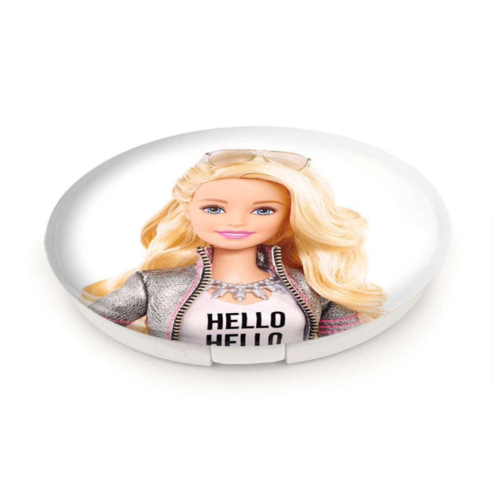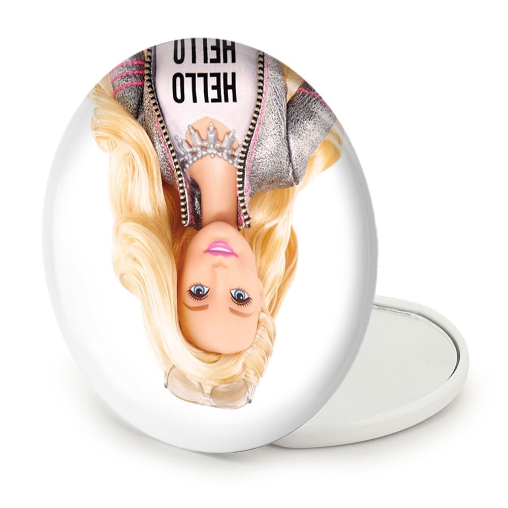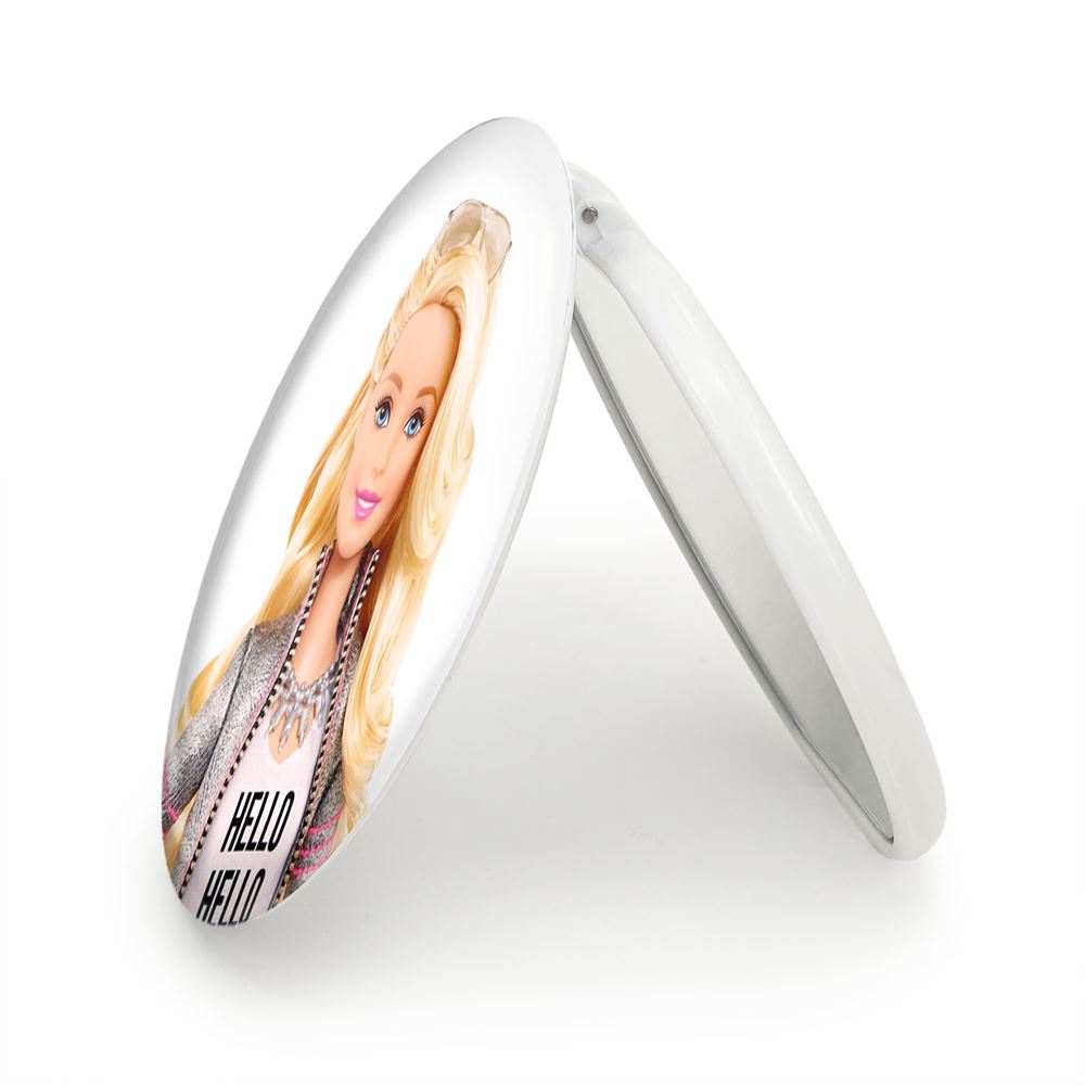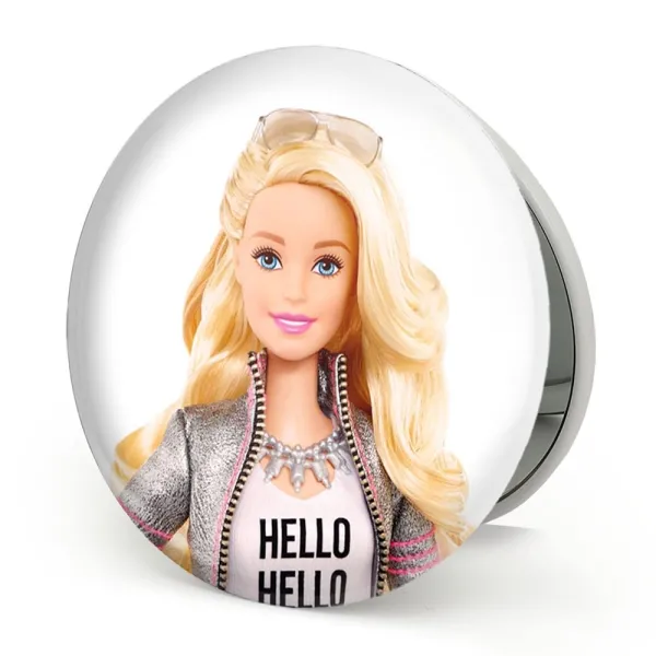 آینه های تاشو عروسک باربی خندالو، از جنس پلاستیک فشرده ABS تولید شده و به رنگ سفید می باشد. یکی از آینه ها ابعاد واقعی را نشان داده و دیگری با قابلیت بزرگنمایی، جزئیات را بهتر نمایش می دهد. ابعاد هر یک از آینه ها، دایره ای به قطر 7.5 سانت می باشد که نه خیلی بزرگ و غیر قابل استفاده در کیف آرایشی ست و نه خیلی کوچک که تصویر خاصی در آن مشاهده نشود. آینه تاشو عروسک باربی سایزی استاندارد و کارآمد دارد و در هر کیفی جا میگیرد. چاپ طرح بوسیله چاپگرهای دیجیتال شش رنگ با شفافیت و کیفیتی مثال زدنی بر روی یک وجه از بدنه ی آینه انجام گرفته و با روکش لمینت حرارتی پوشیده شده که در مقابل آسیب و خط و خش مقاوم بوده و کیفیت بالایی دارد. درب آینه بوسیله قفل بدنه ی آن، باز نمی ماند و کاملا بسته می شود و مناسب قرار گیری در کیف لوازم آرایش و کیف های کوچک دستی نیز هست. آینه های تاشو عروسک باربی خندالو با تنوع طرحی بسیار بالا، سلیقه هر نوع مخاطبی را تامین میکند.