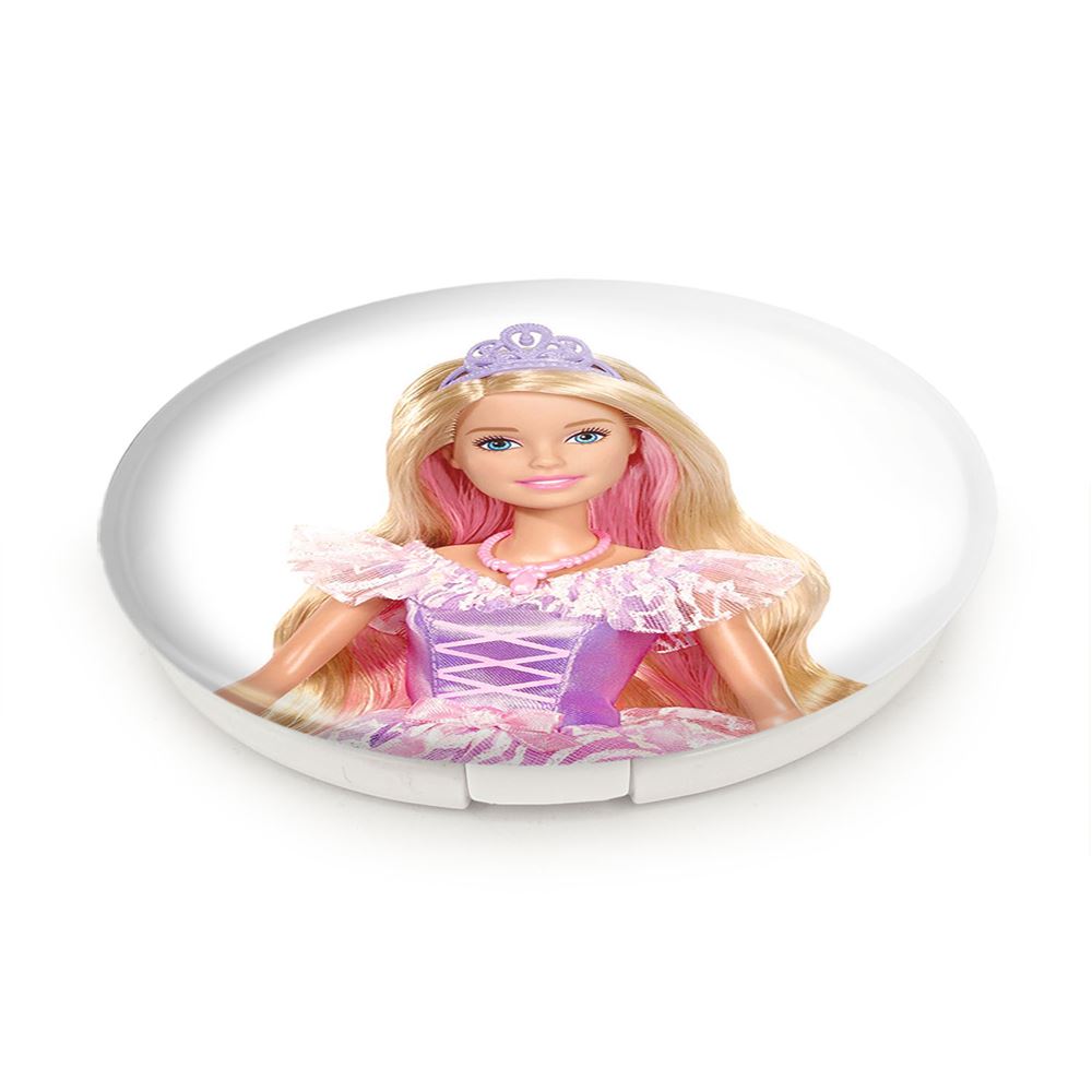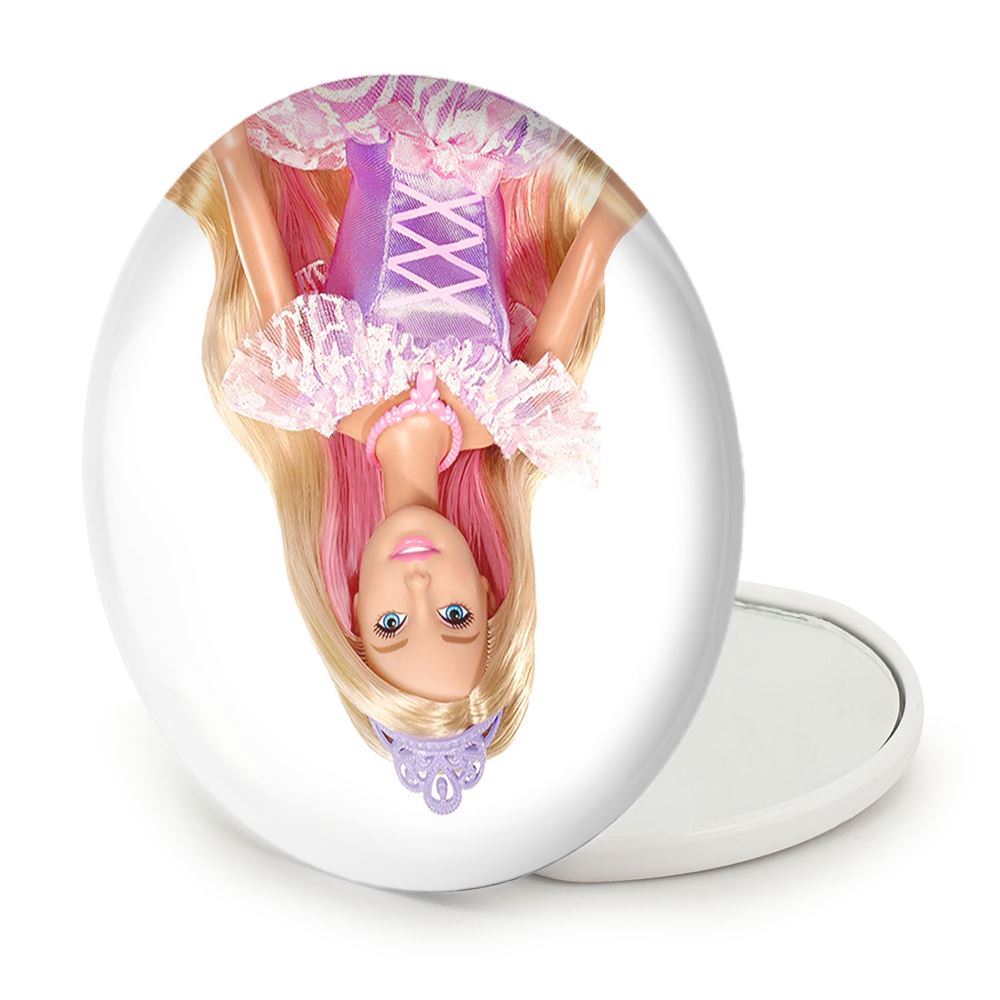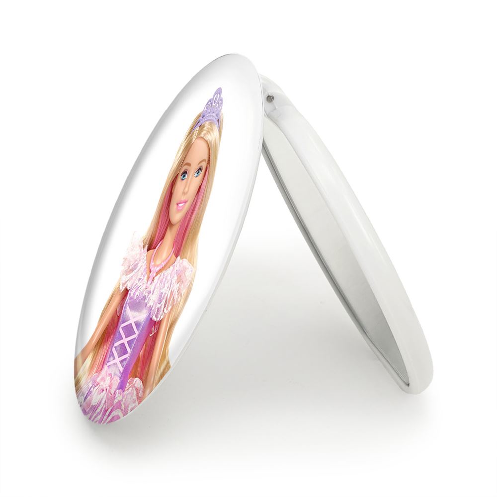 آینه های تاشو عروسک باربی خندالو، از جنس پلاستیک فشرده ABS تولید شده و به رنگ سفید می باشد. یکی از آینه ها ابعاد واقعی را نشان داده و دیگری با قابلیت بزرگنمایی، جزئیات را بهتر نمایش می دهد. ابعاد هر یک از آینه ها، دایره ای به قطر 7.5 سانت می باشد که نه خیلی بزرگ و غیر قابل استفاده در کیف آرایشی ست و نه خیلی کوچک که تصویر خاصی در آن مشاهده نشود. آینه تاشو عروسک باربی سایزی استاندارد و کارآمد دارد و در هر کیفی جا میگیرد. چاپ طرح بوسیله چاپگرهای دیجیتال شش رنگ با شفافیت و کیفیتی مثال زدنی بر روی یک وجه از بدنه ی آینه انجام گرفته و با روکش لمینت حرارتی پوشیده شده که در مقابل آسیب و خط و خش مقاوم بوده و کیفیت بالایی دارد. درب آینه بوسیله قفل بدنه ی آن، باز نمی ماند و کاملا بسته می شود و مناسب قرار گیری در کیف لوازم آرایش و کیف های کوچک دستی نیز هست. آینه های تاشو عروسک باربی خندالو با تنوع طرحی بسیار بالا، سلیقه هر نوع مخاطبی را تامین میکند.