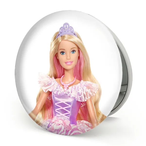 آینه های تاشو عروسک باربی خندالو، از جنس پلاستیک فشرده ABS تولید شده و به رنگ سفید می باشد. یکی از آینه ها ابعاد واقعی را نشان داده و دیگری با قابلیت بزرگنمایی، جزئیات را بهتر نمایش می دهد. ابعاد هر یک از آینه ها، دایره ای به قطر 7.5 سانت می باشد که نه خیلی بزرگ و غیر قابل استفاده در کیف آرایشی ست و نه خیلی کوچک که تصویر خاصی در آن مشاهده نشود. آینه تاشو عروسک باربی سایزی استاندارد و کارآمد دارد و در هر کیفی جا میگیرد. چاپ طرح بوسیله چاپگرهای دیجیتال شش رنگ با شفافیت و کیفیتی مثال زدنی بر روی یک وجه از بدنه ی آینه انجام گرفته و با روکش لمینت حرارتی پوشیده شده که در مقابل آسیب و خط و خش مقاوم بوده و کیفیت بالایی دارد. درب آینه بوسیله قفل بدنه ی آن، باز نمی ماند و کاملا بسته می شود و مناسب قرار گیری در کیف لوازم آرایش و کیف های کوچک دستی نیز هست. آینه های تاشو عروسک باربی خندالو با تنوع طرحی بسیار بالا، سلیقه هر نوع مخاطبی را تامین میکند.
