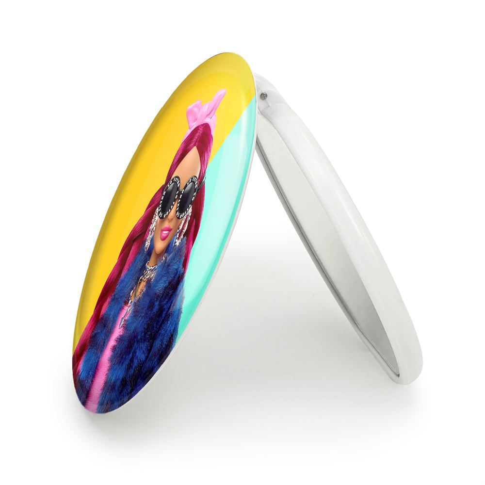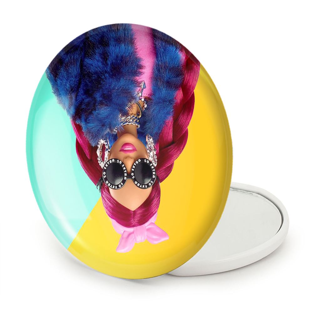 آینه های تاشو عروسک باربی خندالو، از جنس پلاستیک فشرده ABS تولید شده و به رنگ سفید می باشد. یکی از آینه ها ابعاد واقعی را نشان داده و دیگری با قابلیت بزرگنمایی، جزئیات را بهتر نمایش می دهد.