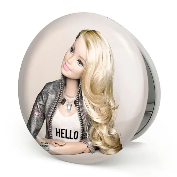 آینه های تاشو عروسک باربی خندالو، از جنس پلاستیک فشرده ABS تولید شده و به رنگ سفید می باشد. یکی از آینه ها ابعاد واقعی را نشان داده و دیگری با قابلیت بزرگنمایی، جزئیات را بهتر نمایش می دهد. ابعاد هر یک از آینه ها، دایره ای به قطر 7.5 سانت می باشد که نه خیلی بزرگ و غیر قابل استفاده در کیف آرایشی ست و نه خیلی کوچک که تصویر خاصی در آن مشاهده نشود. آینه تاشو عروسک باربی سایزی استاندارد و کارآمد دارد و در هر کیفی جا میگیرد. چاپ طرح بوسیله چاپگرهای دیجیتال شش رنگ با شفافیت و کیفیتی مثال زدنی بر روی یک وجه از بدنه ی آینه انجام گرفته و با روکش لمینت حرارتی پوشیده شده که در مقابل آسیب و خط و خش مقاوم بوده و کیفیت بالایی دارد. درب آینه بوسیله قفل بدنه ی آن، باز نمی ماند و کاملا بسته می شود و مناسب قرار گیری در کیف لوازم آرایش و کیف های کوچک دستی نیز هست. آینه های تاشو عروسک باربی خندالو با تنوع طرحی بسیار بالا، سلیقه هر نوع مخاطبی را تامین میکند.